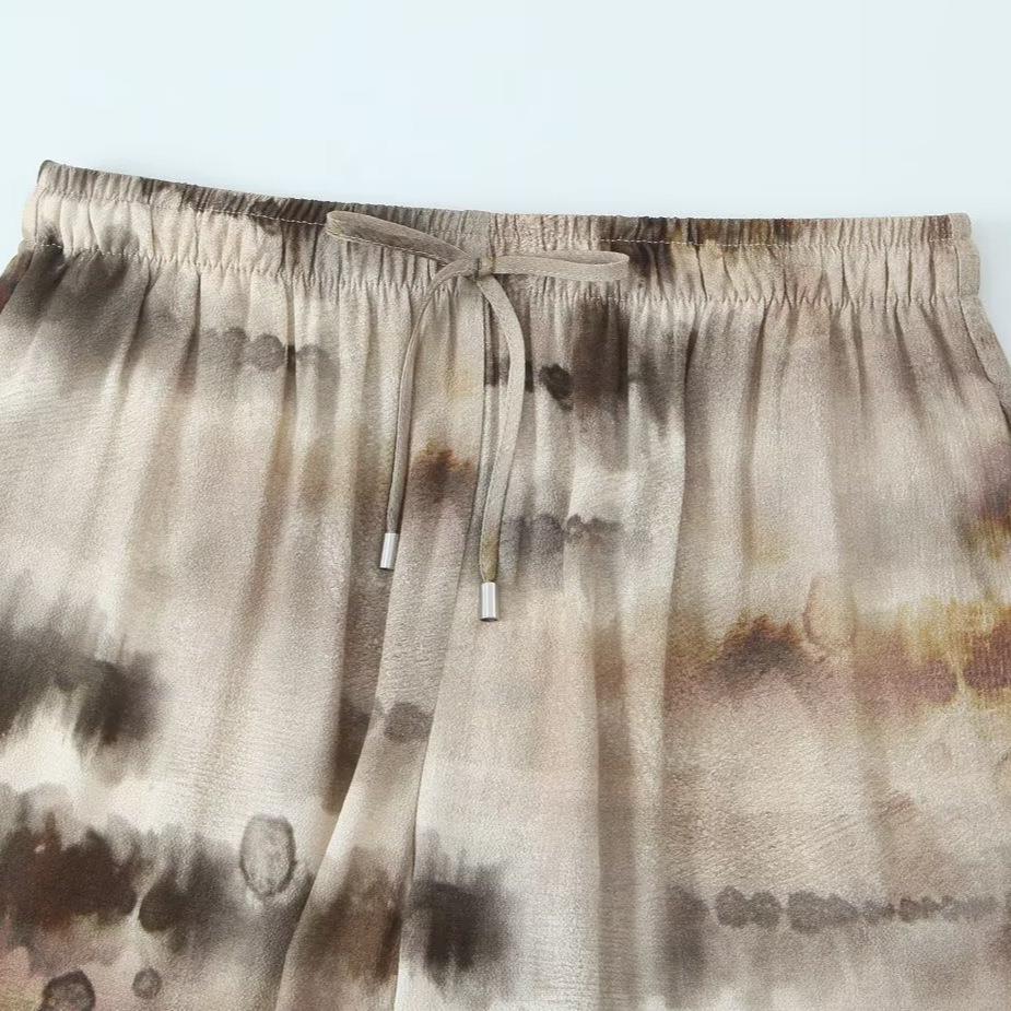 Tie Dye, Color Blocking, Drawstring, Loose Wide-leg, Ink Marble Pattern