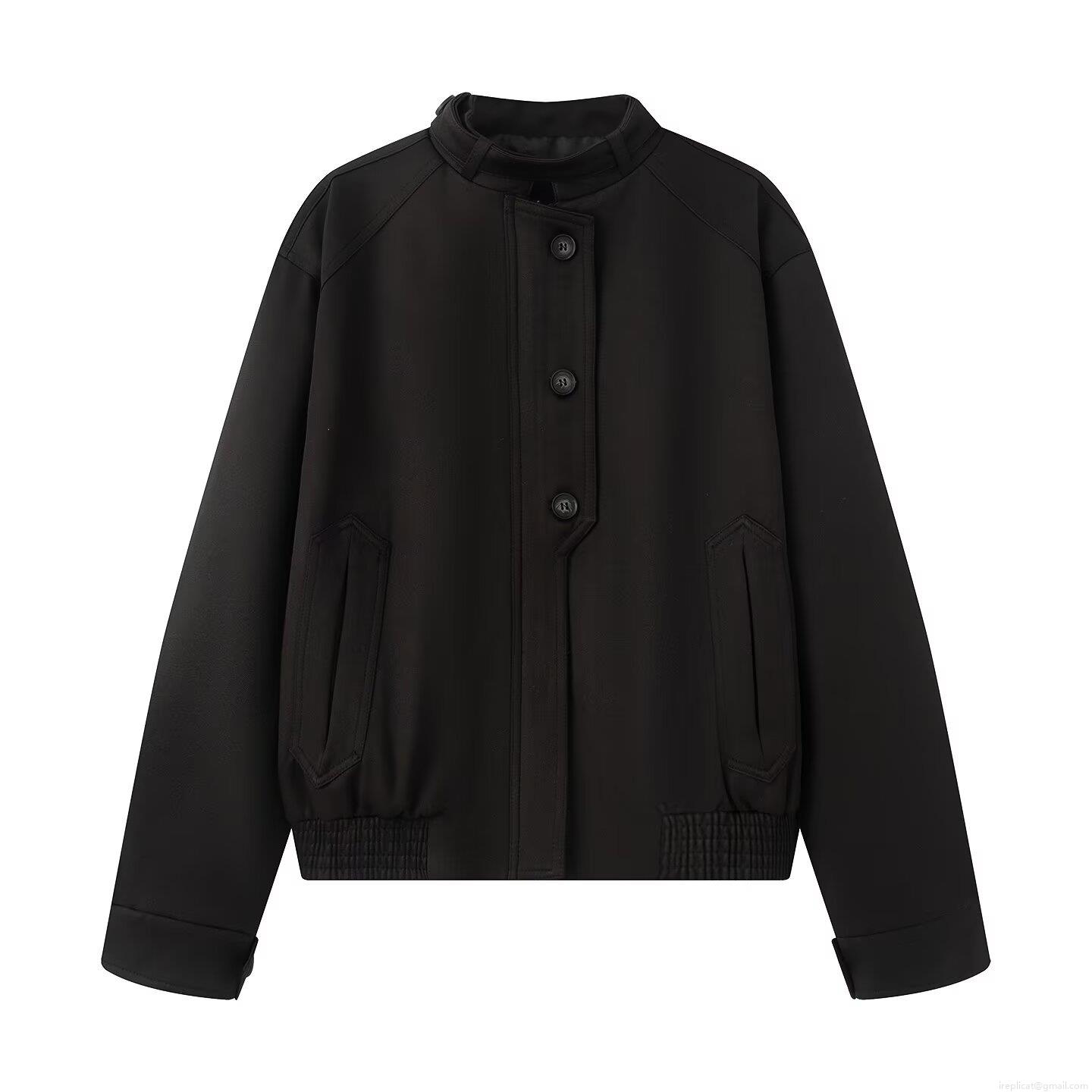 Solid Color, Button Decoration, Elastic Seam, Stand-up Collar Design, Pleating Process, Wide-leg Cut