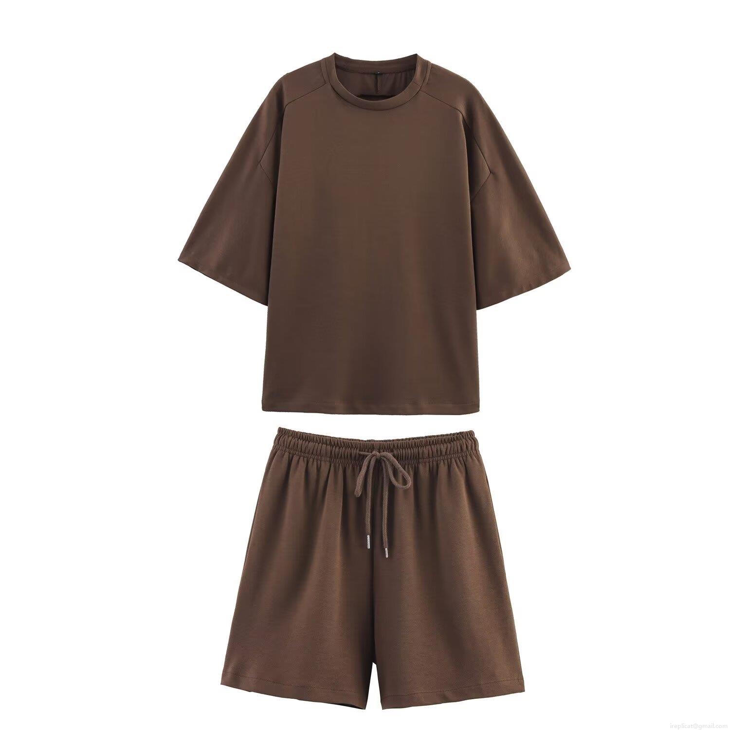 • Women's Casual Two Piece Shorts Set Cotton Polyester Blend Short Sleeve Round Neck T-Shirt and Drawstring High Waist Shorts Summer Outfits Streetwear Lounge Wear