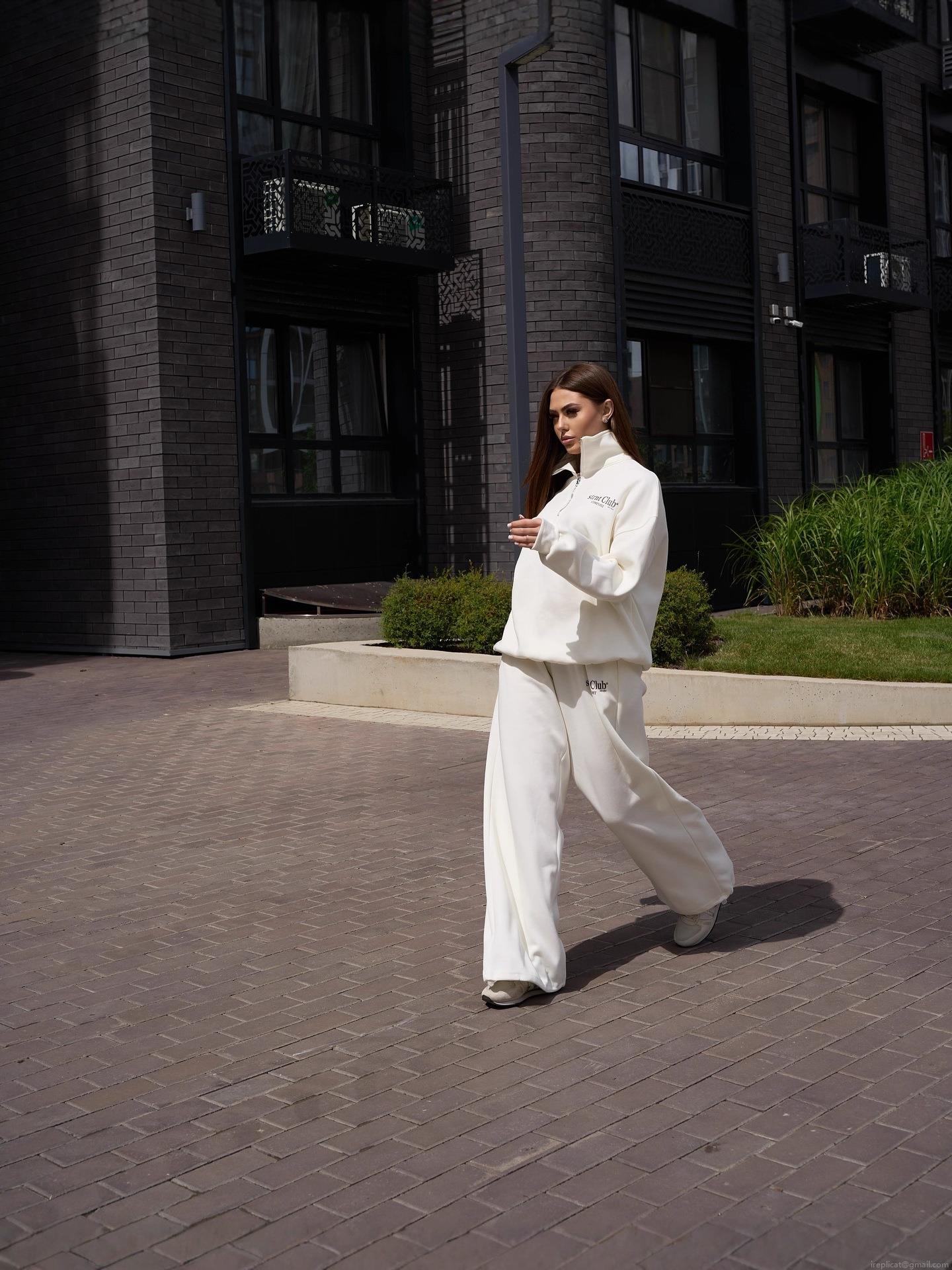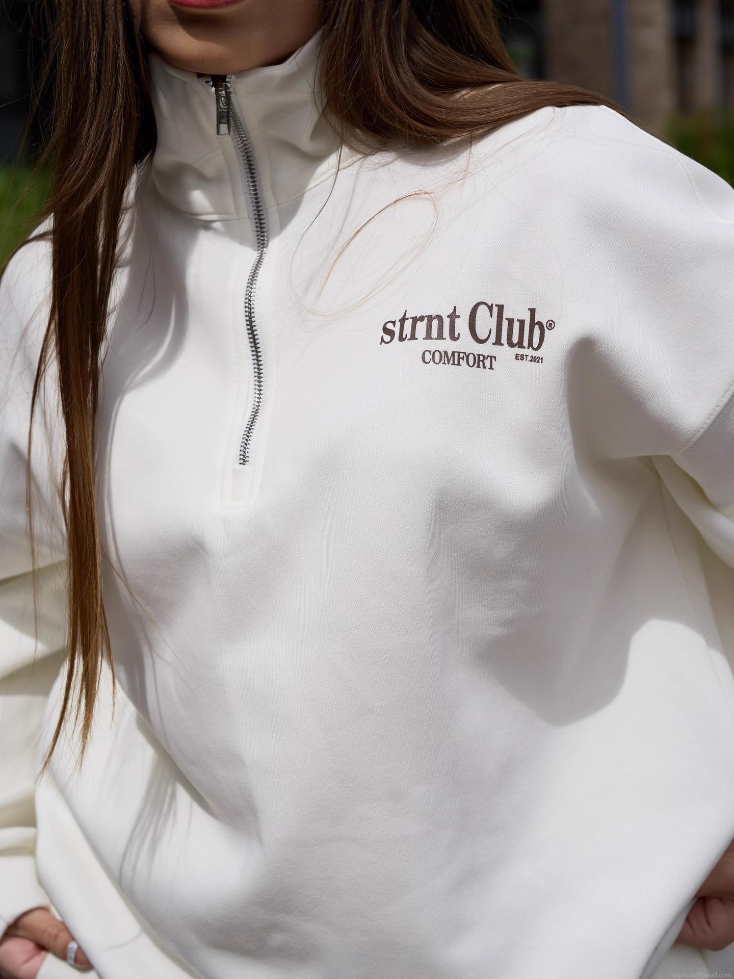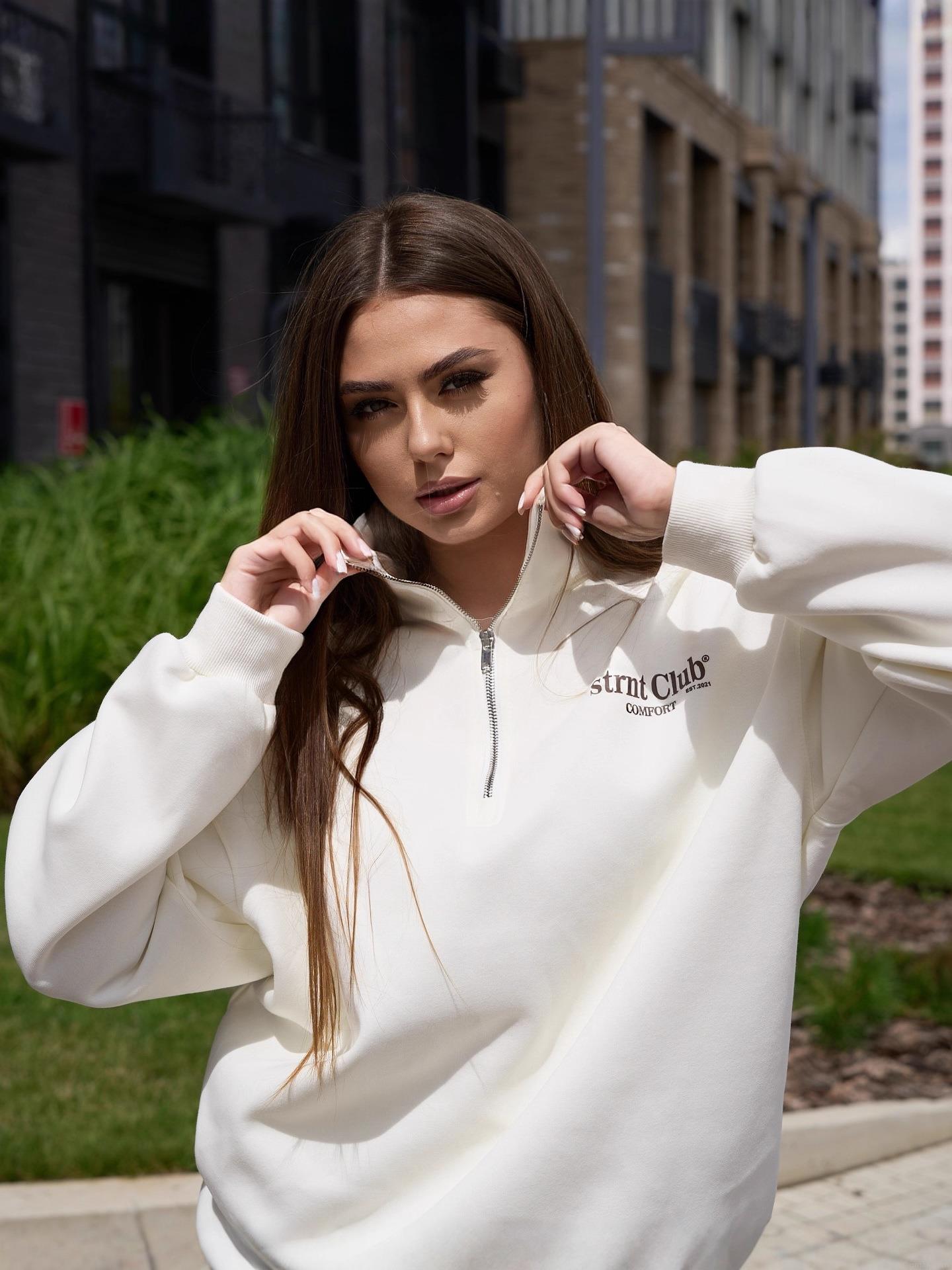 Text, Letters, Half Zipper, Printing, Stand-up Collar, Wide-leg Design