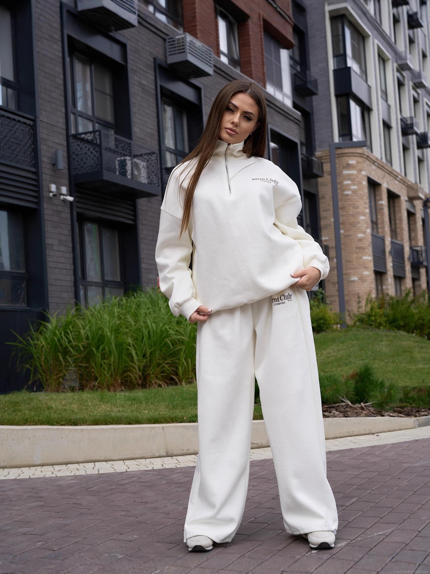 • Women's Casual Two Piece Sportswear Set Half Zip Stand Collar Sweatshirt and Wide Leg Sweatpants Cotton Blend Loungewear Outfit Streetwear For Women