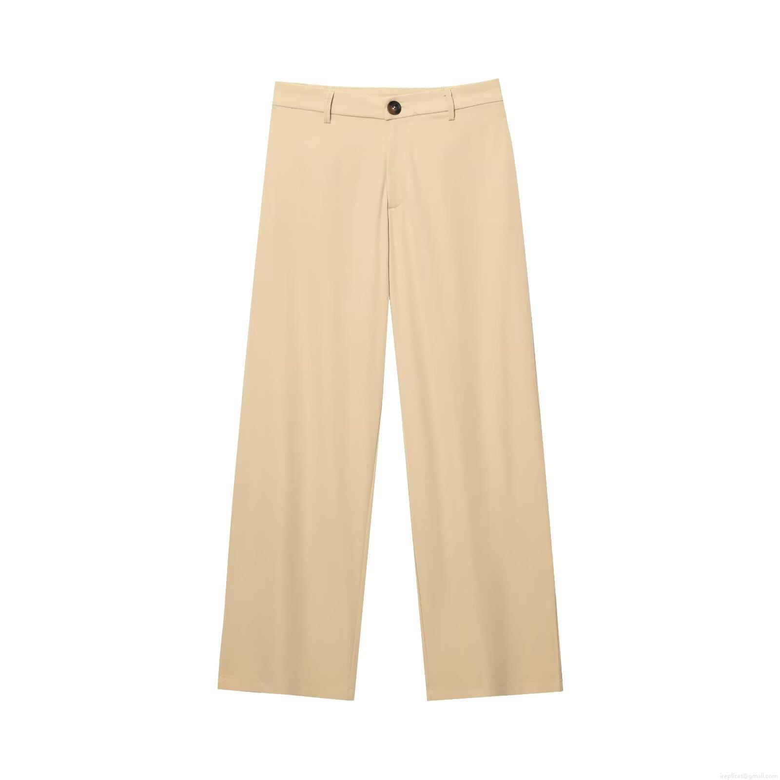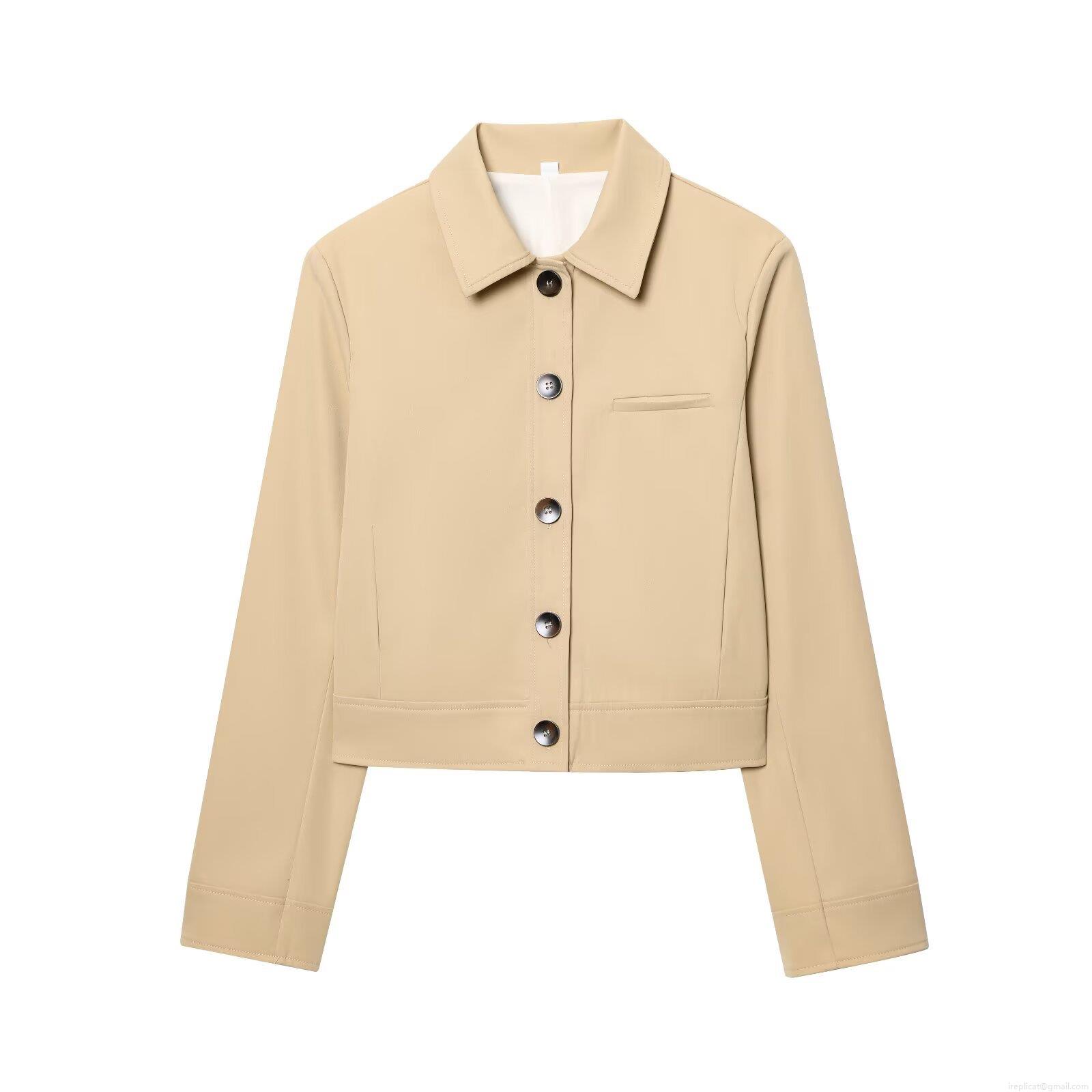 • Women's Casual Two-Piece Set Polyester Cropped Lapel Jacket And High Waist Wide Leg Pants Solid Color Streetwear Autumn Outfit For Women