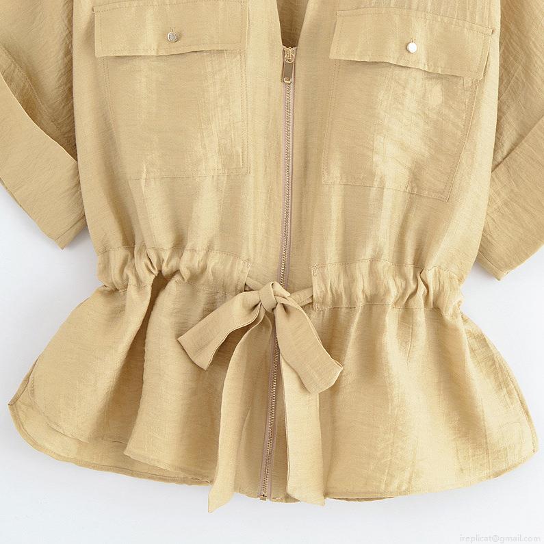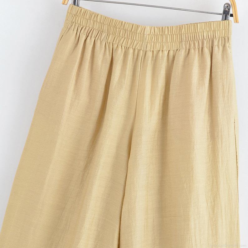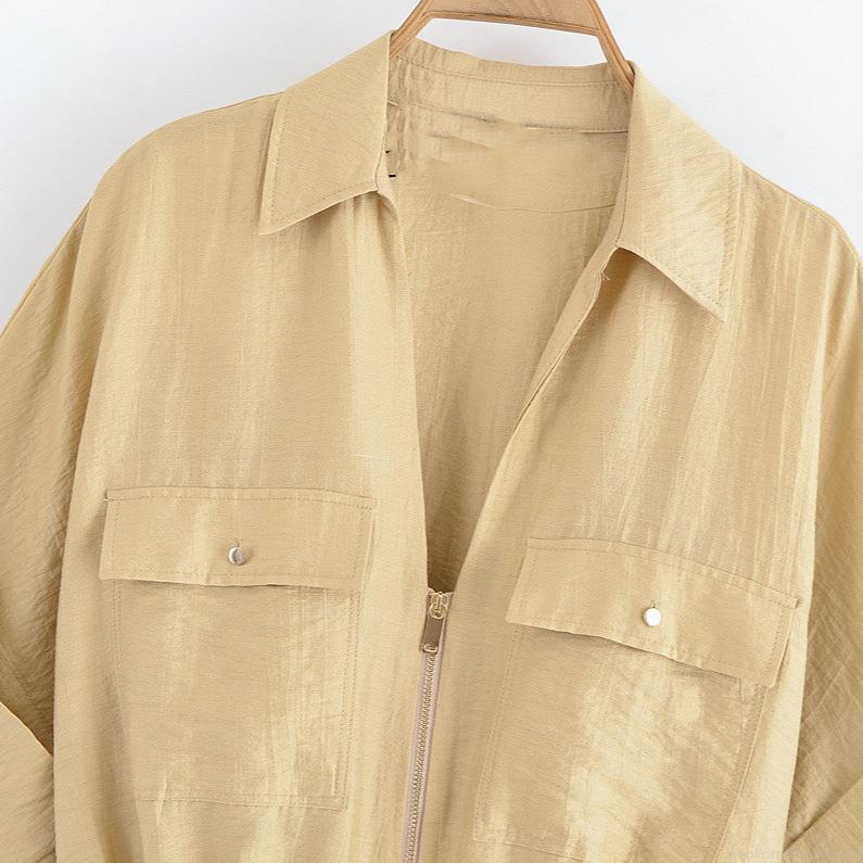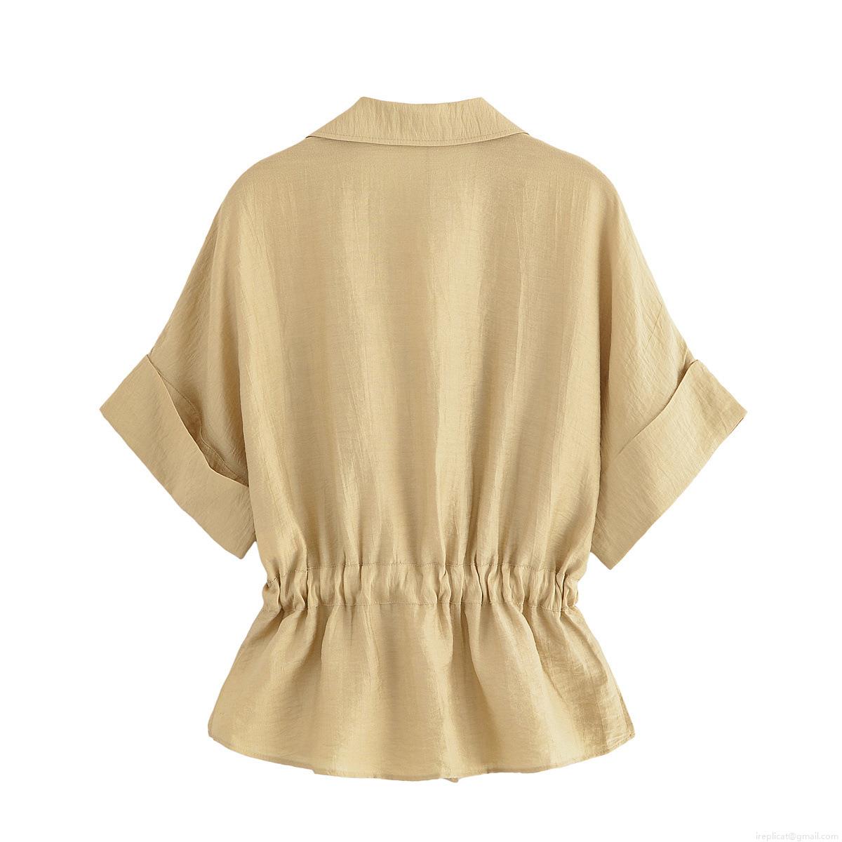 • Women's Casual Two-Piece Set Short Sleeve Zipper Shirt with Drawstring Waist and Wide Leg Pants Summer Comfortable Loose Cotton Blend Fashion Suit