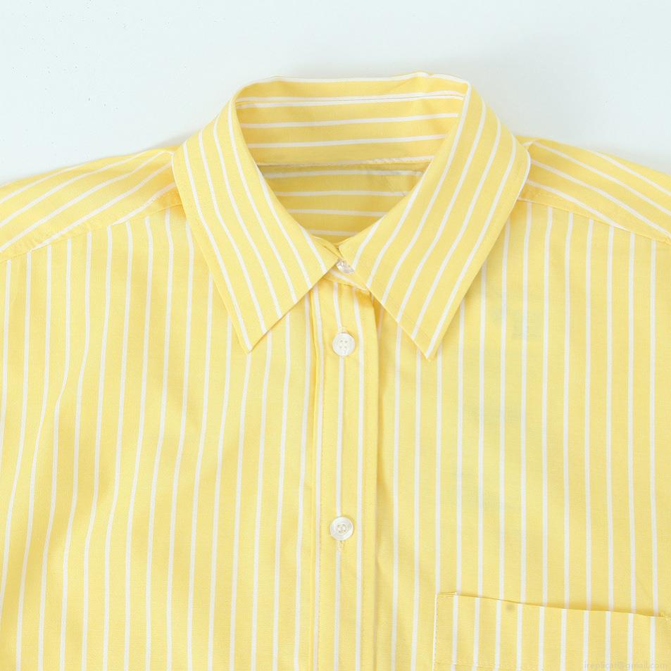 • Women's Casual Yellow White Striped Shirt And Long Pants Set Summer Loose Pajama Style Long Sleeve Top Wide Leg Pants Loungewear Two Piece Set