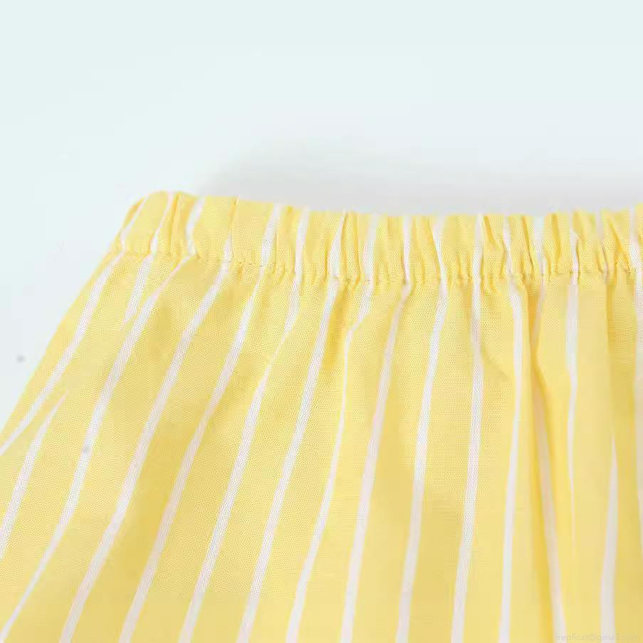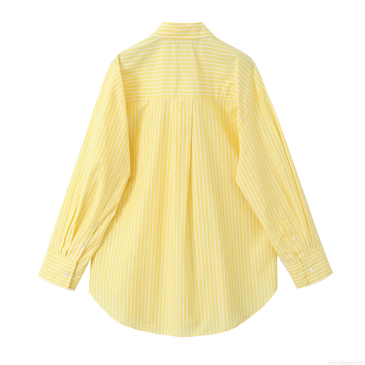 Women's Casual Yellow White Striped Shirt And Long Pants Set Summer Loose Pajama Style Long Sleeve Top Wide Leg Pants Loungewear Two Piece Set