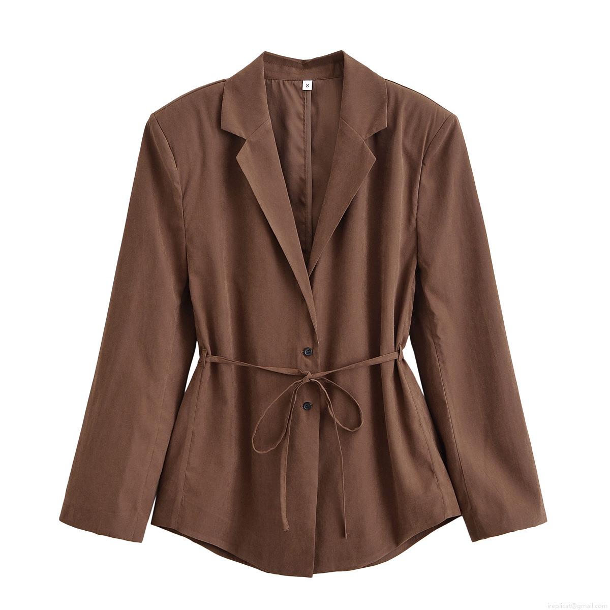 • Women's Chic Blazer Jacket And Mini Shorts Polyester Striped Solid Color Tie Waist Lapel Two Piece Set For Office Casual Streetwear