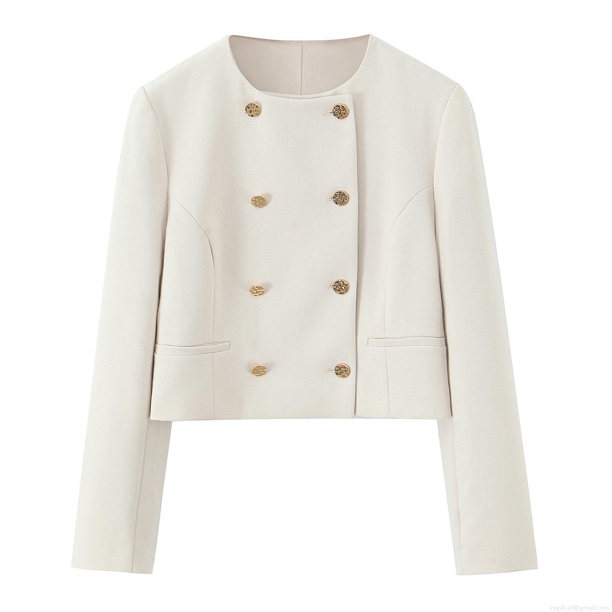 • Women's Elegant 2 Piece Suit Set Double Breasted Short Blazer Jacket And High Waist Wide Leg Pants With Gold Chain Belt Solid Color Polyester Woven Business Office Streetwear Outfits For Women