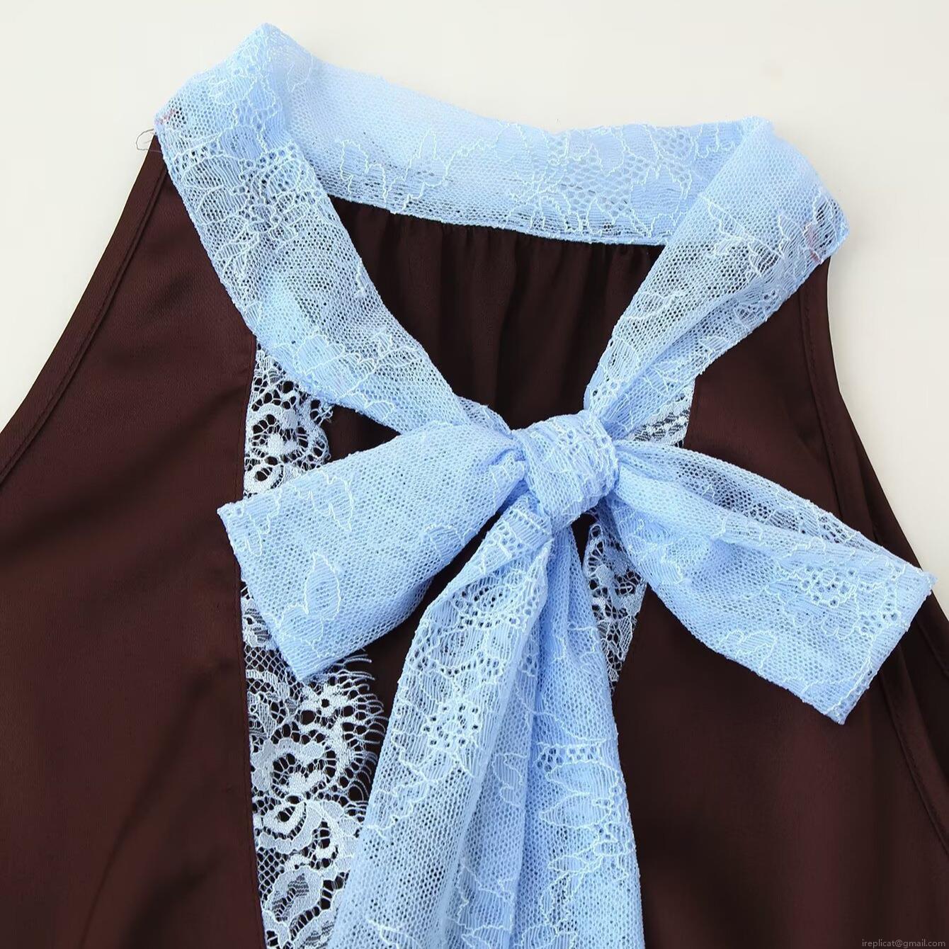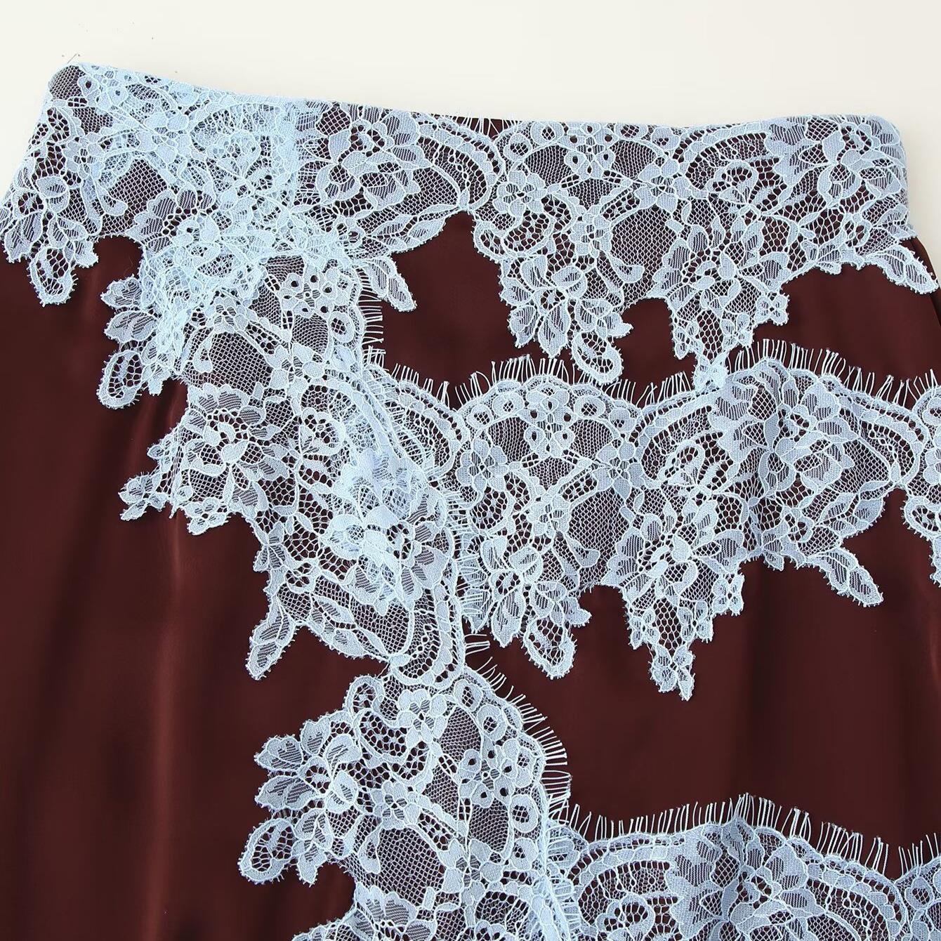 • Women's Elegant 2-Piece Set Halter Neck Top And Asymmetric Midi Skirt Lace Splicing Bow Tie Two-Piece Outfit For Party Dating Autumn Fashion Set