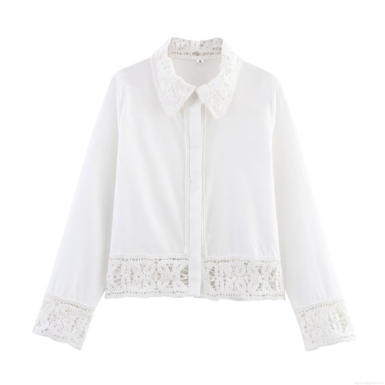 Women's Elegant Crochet Lace Trim Shirt And Shorts Individual Pieces Two Piece Set Elegant Long Sleeve Blouse High Waist Casual Shorts For Summer Streetwear Outfits