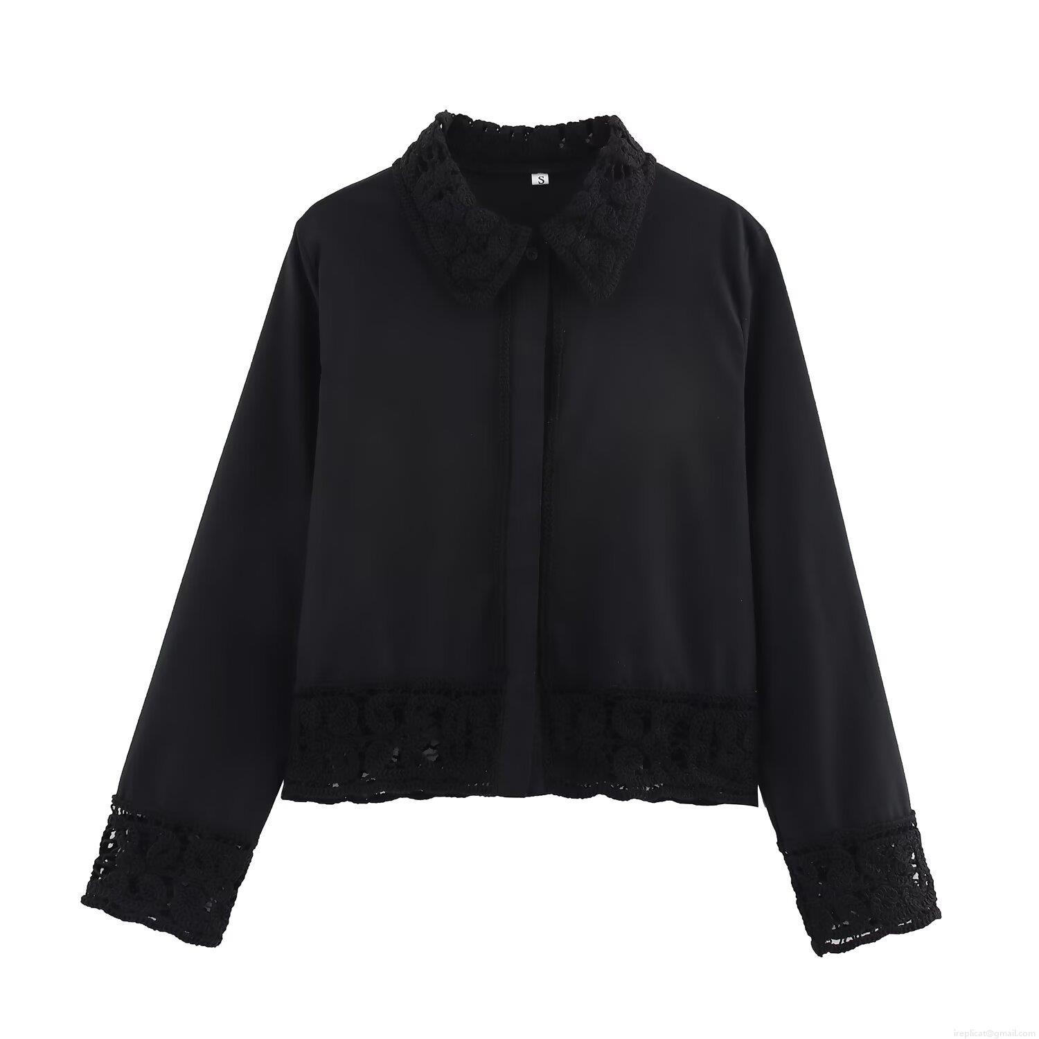 Solid Color, Splice, Hollow Out, Lace Trim, Crochet