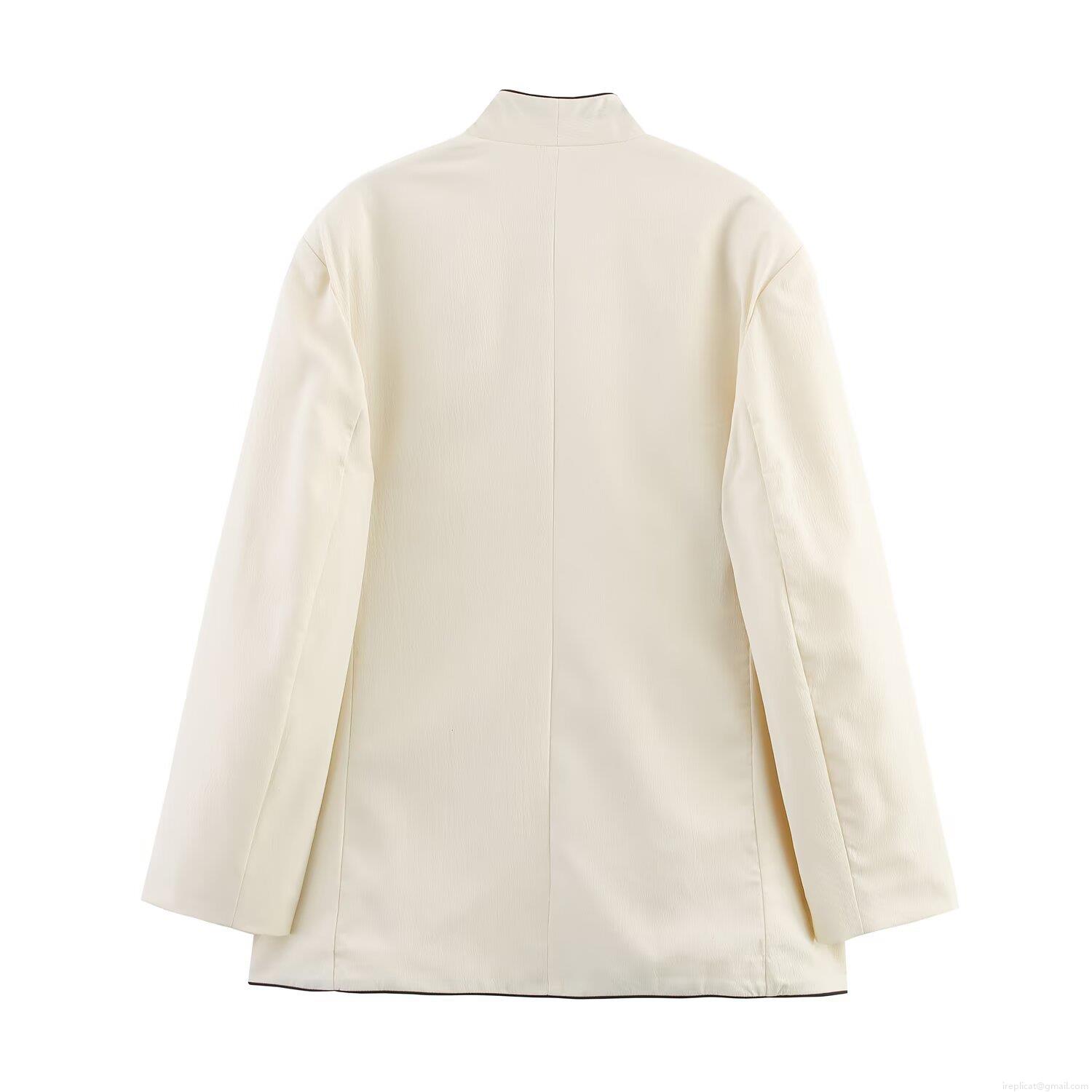 Solid Color, Double-breasted, Contrasting Trim, Black Piping