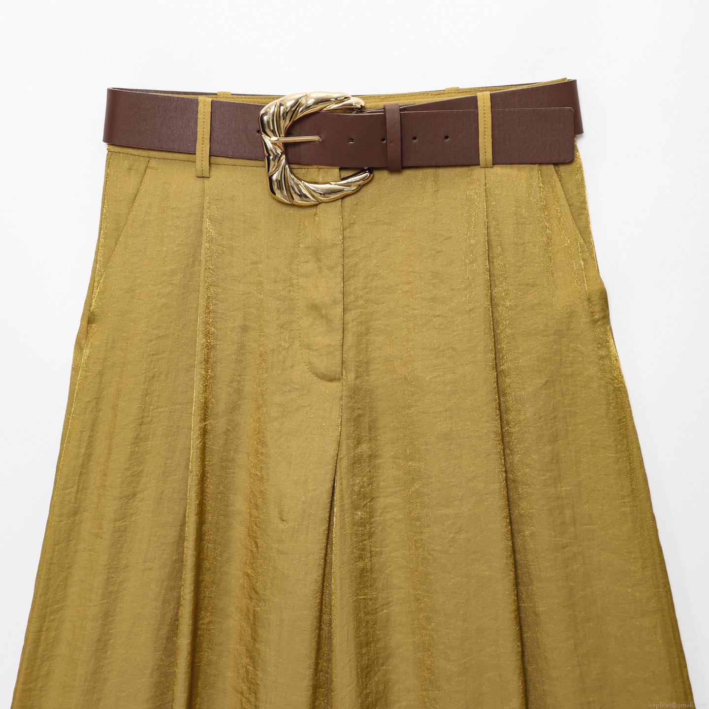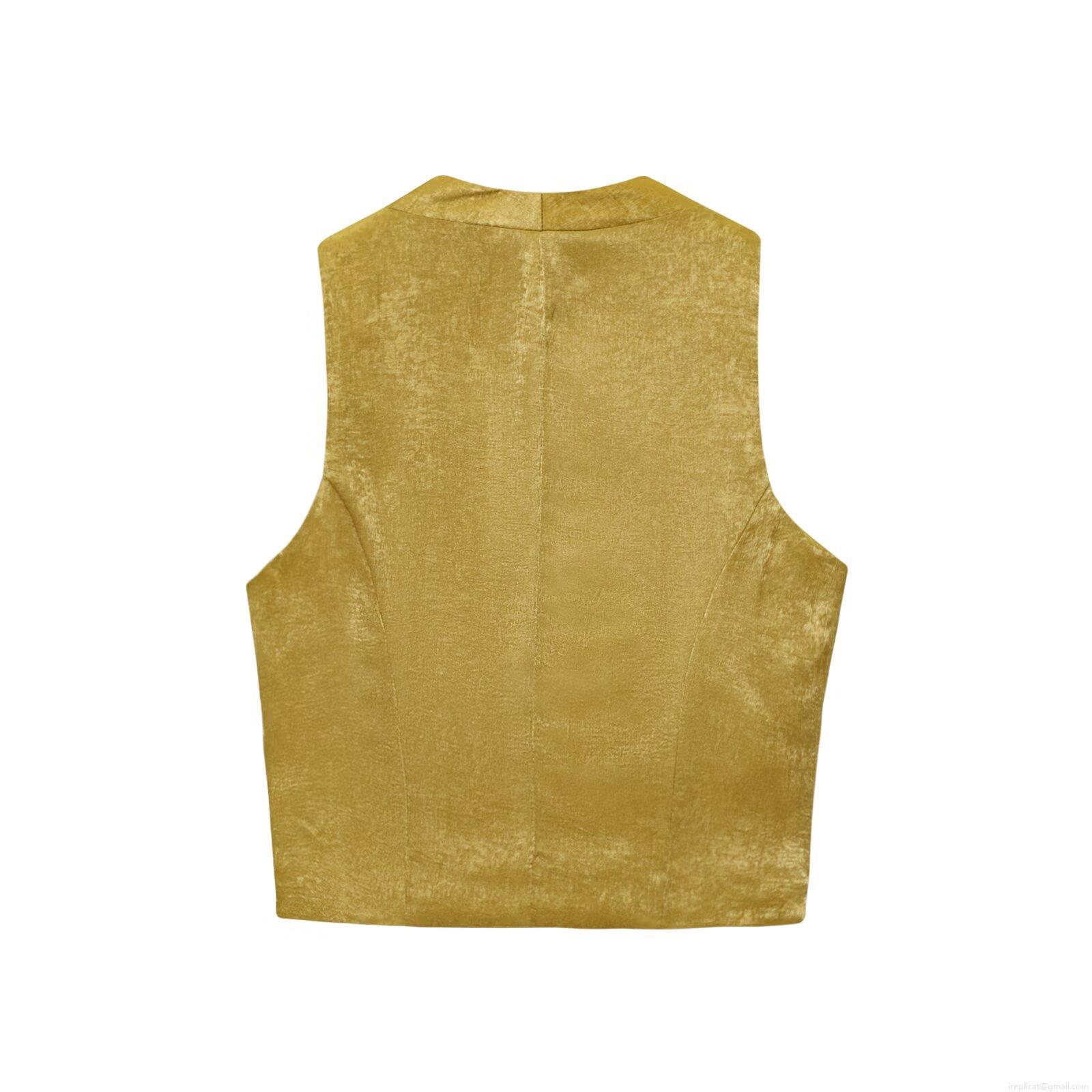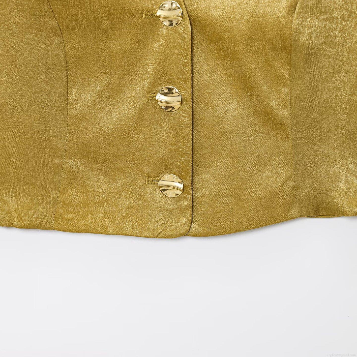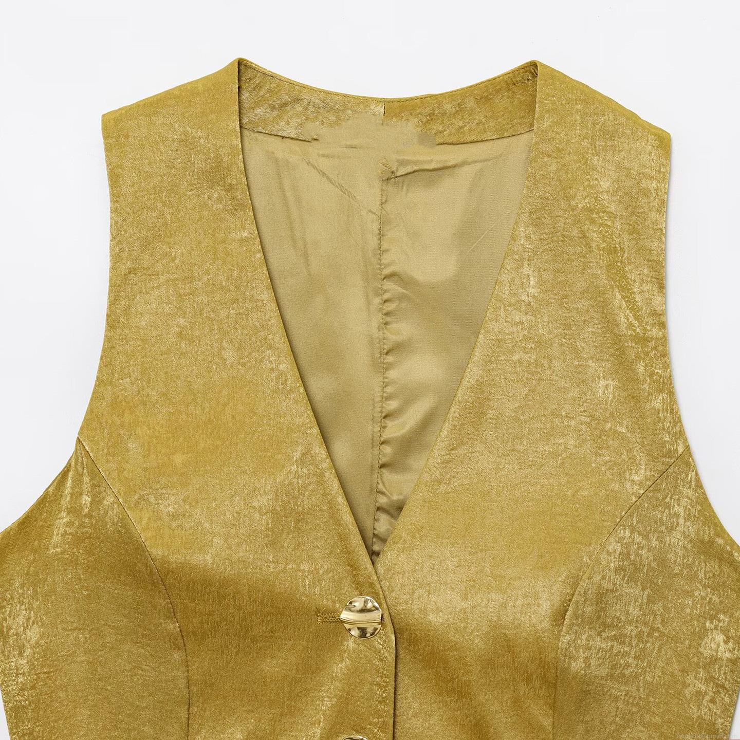 • Women's Elegant Satin Velvet Two Piece Pants Set Sleeveless V-Neck Button Up Vest Top And High Waist Wide Leg Trousers With Belt Mustard Gold Chic Summer Outfits