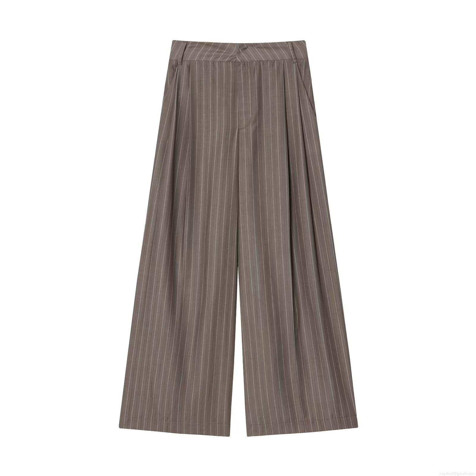 Stripe, Pleats, Lace, Shoulder Pads, Wide-leg