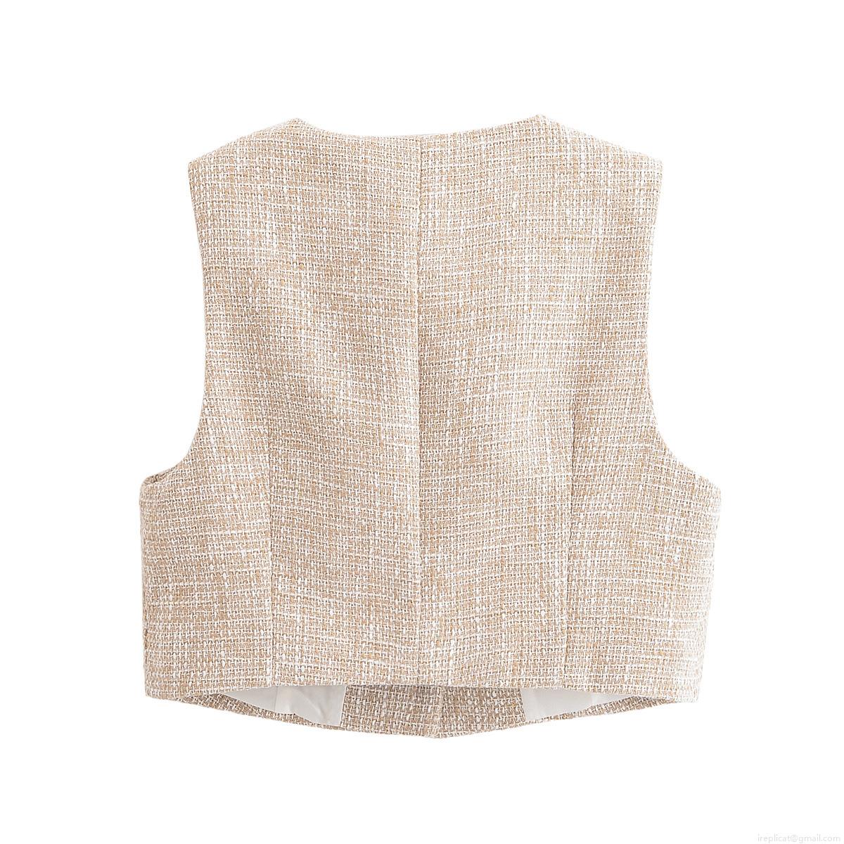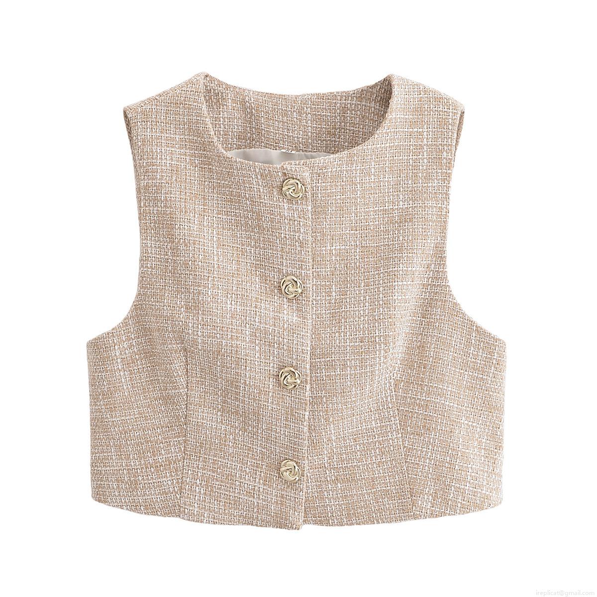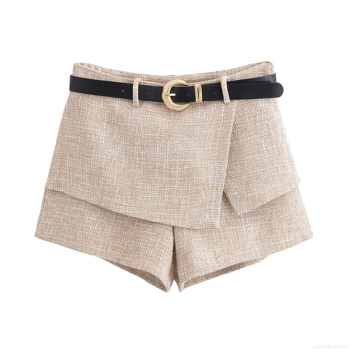 • Women's Elegant Tweed Two Piece Set Sleeveless Button Down Vest With Belted Skort Culottes Casual Streetwear Summer Outfit