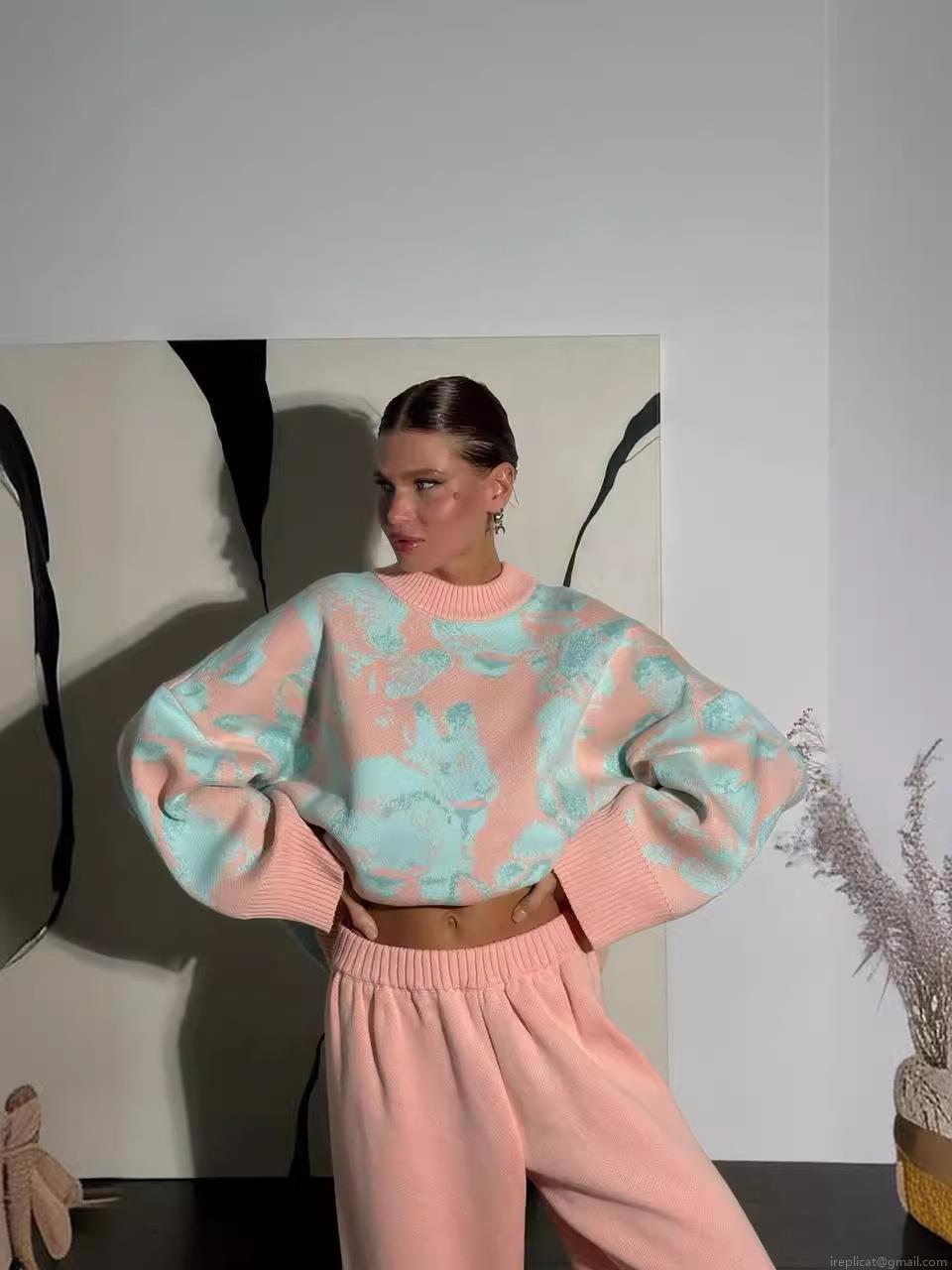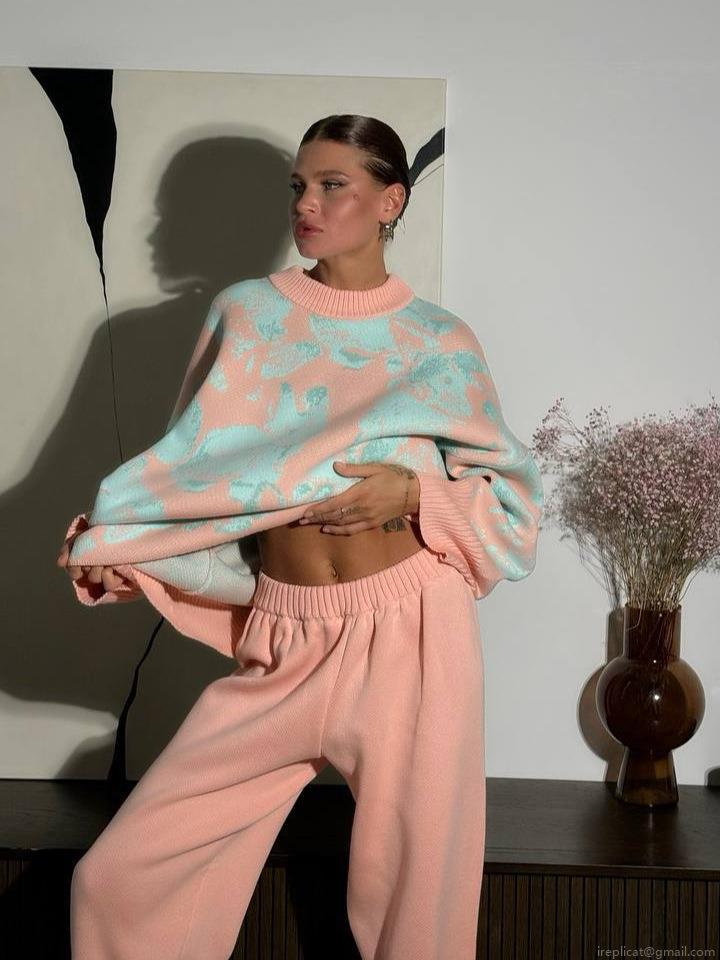 Rabbit, Jacquard, Color Blocking, Wide-leg, Ribbed Seam, Abstract Patterns, Dropped Shoulders