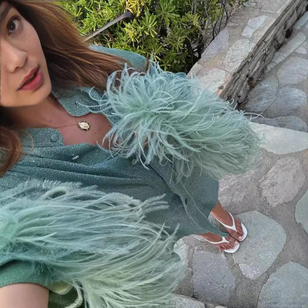 Solid Color, Splice, Metallic Texture, Feather Decorations, Glossy Fabric