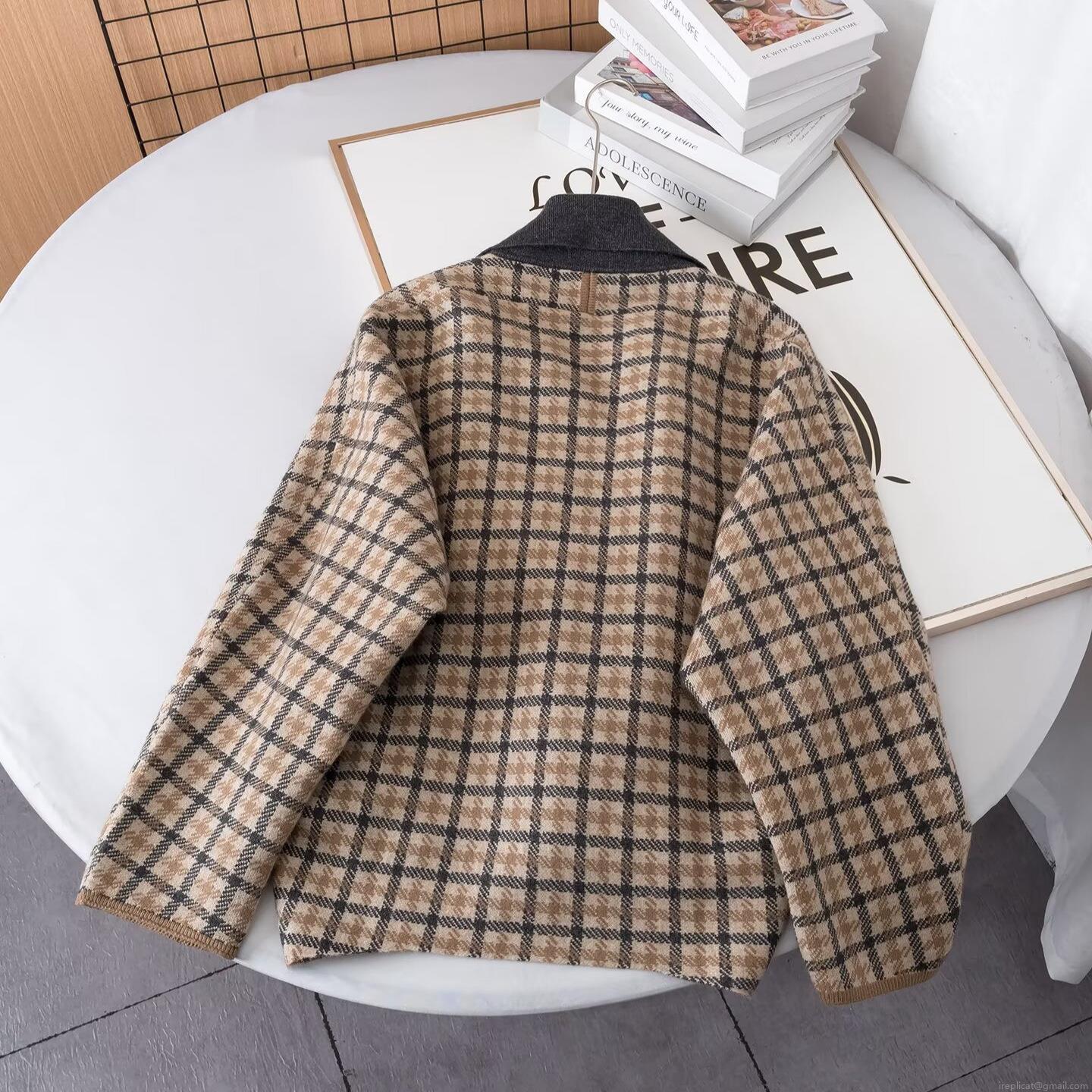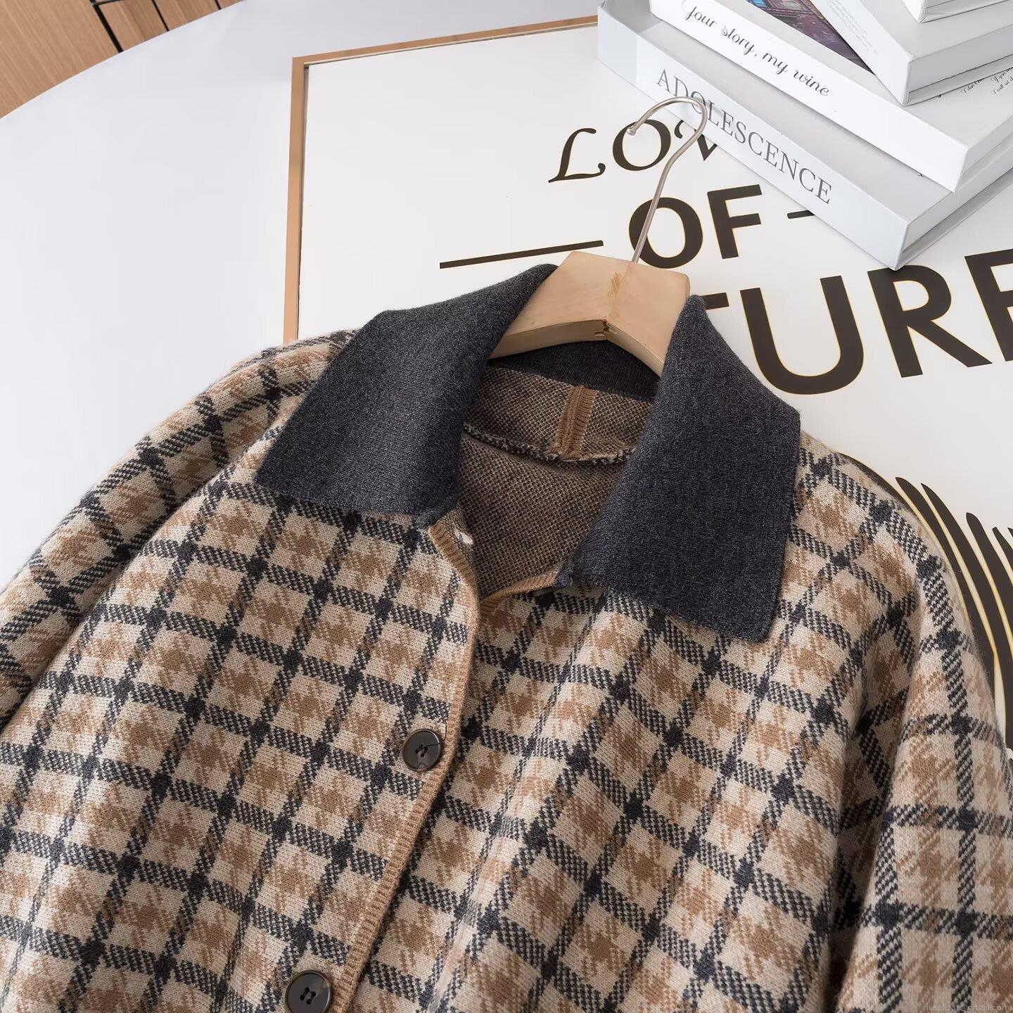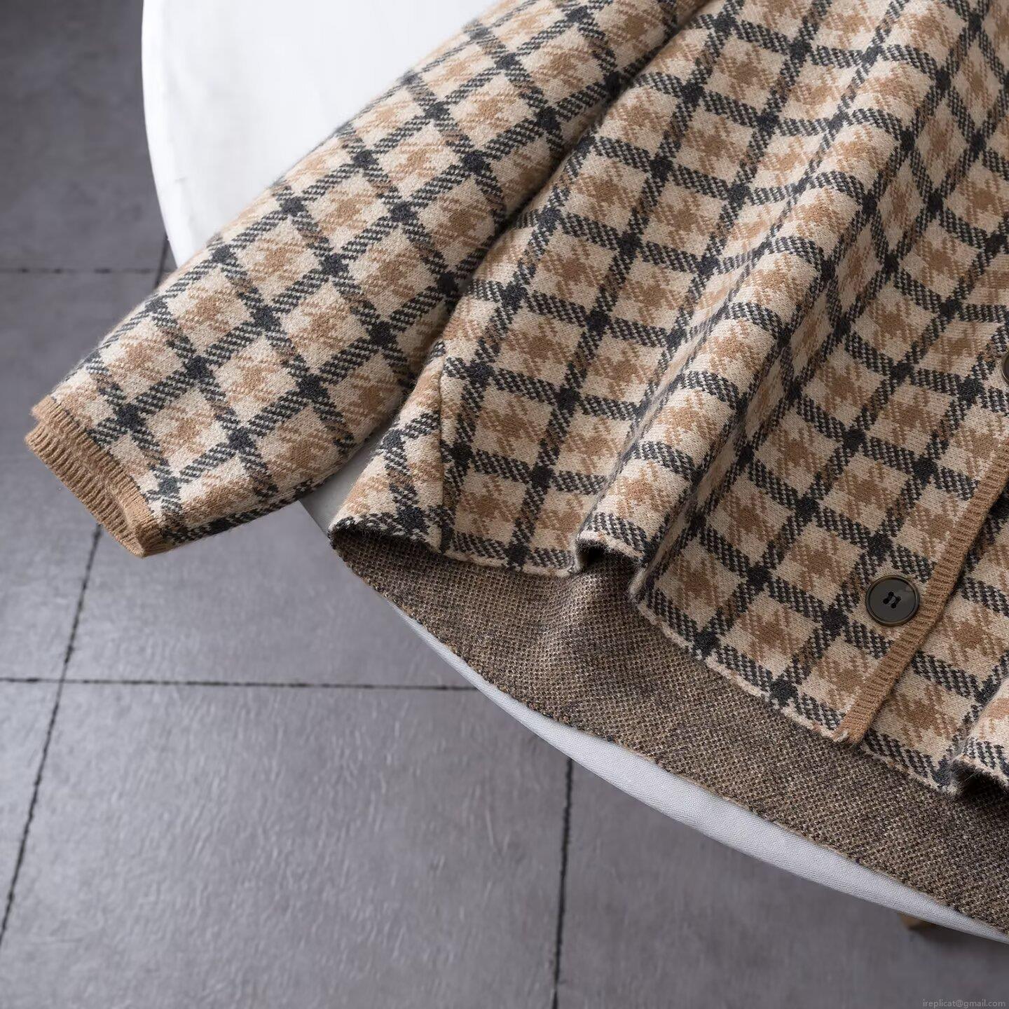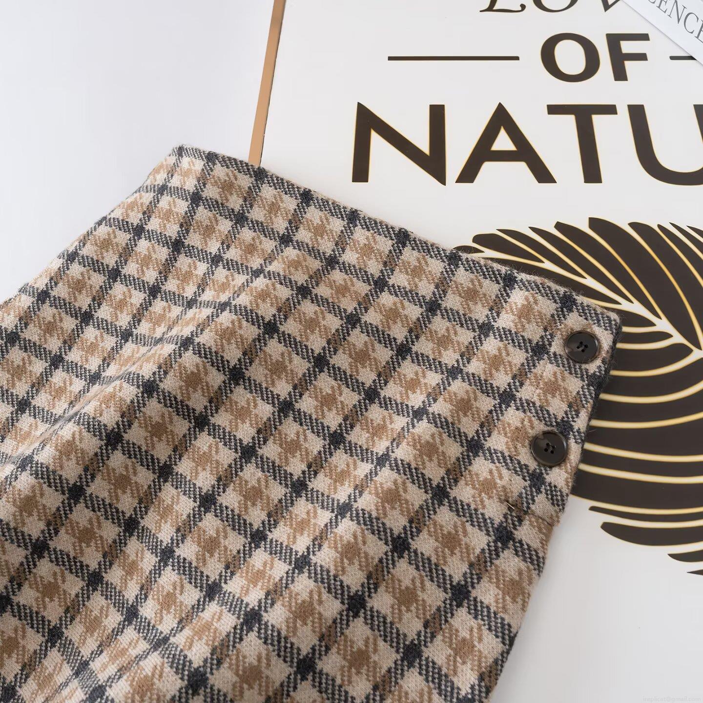Women's Plaid Knit Two Piece Set Houndstooth Button Cardigan Lapel Top And A-Line Mini Skirt Elegant Commute Style Autumn Winter Outfits Brown Grey Knitwear Clothing