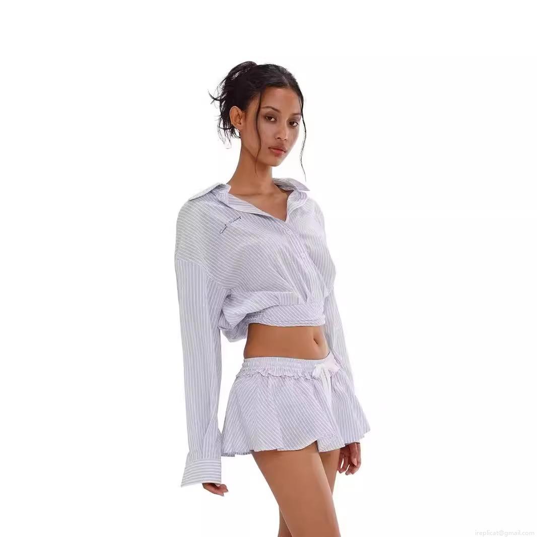 Solid Color, Stripe, Pleats, Ruffles, Lace, Navel Exposed
