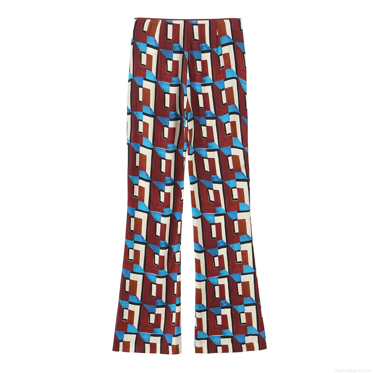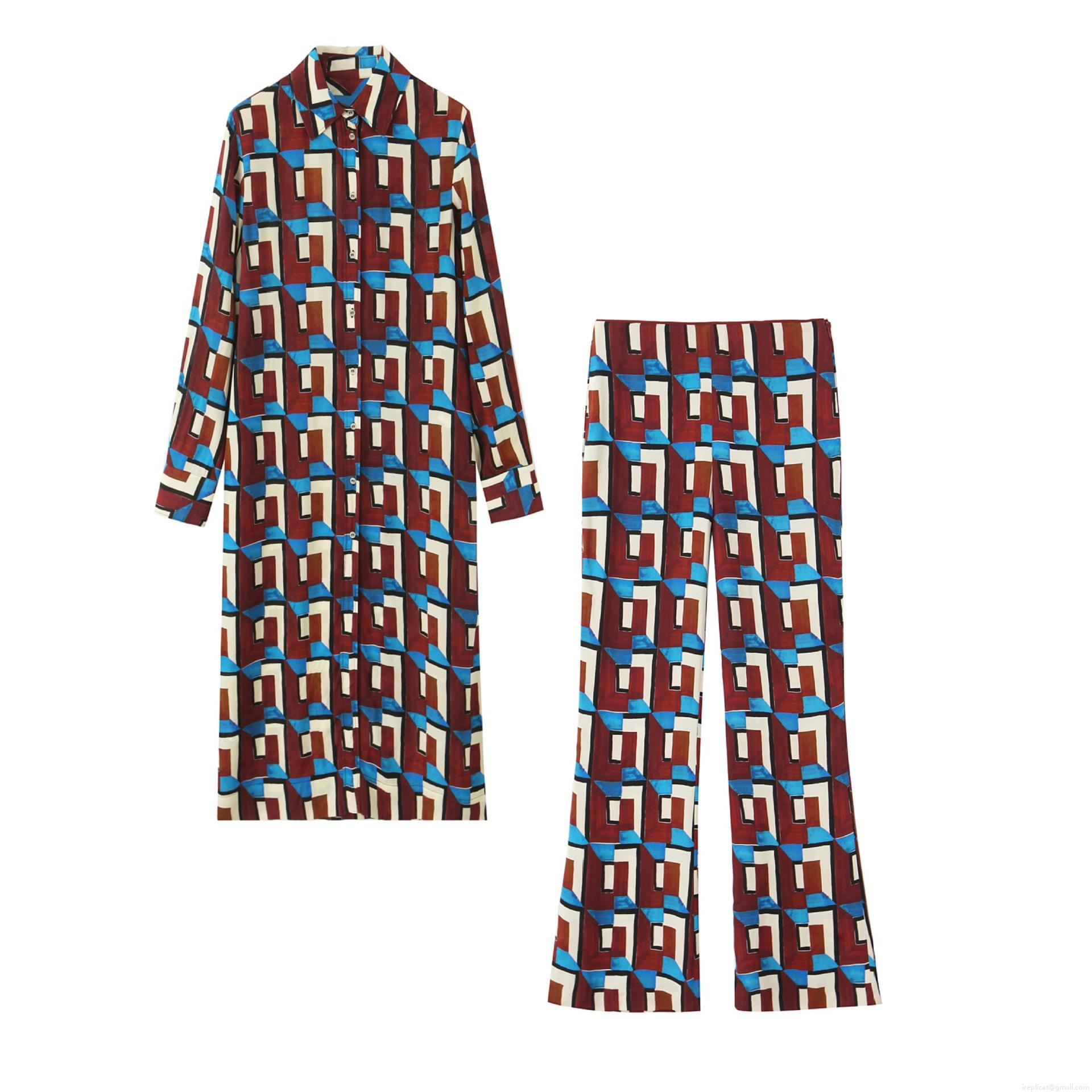 • Women's Retro Geometric Print Long Sleeve Button Up Long Shirt Tunic And High Waist Wide Leg Pants Two Piece Set Casual Streetwear Outfits