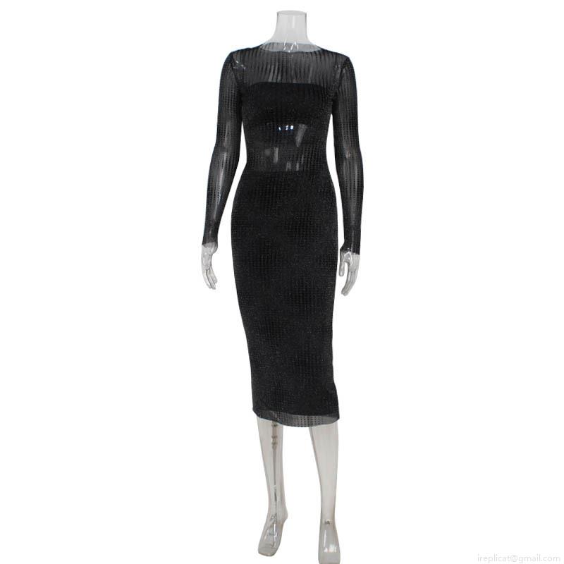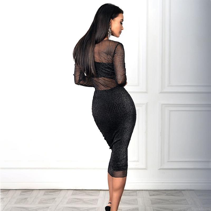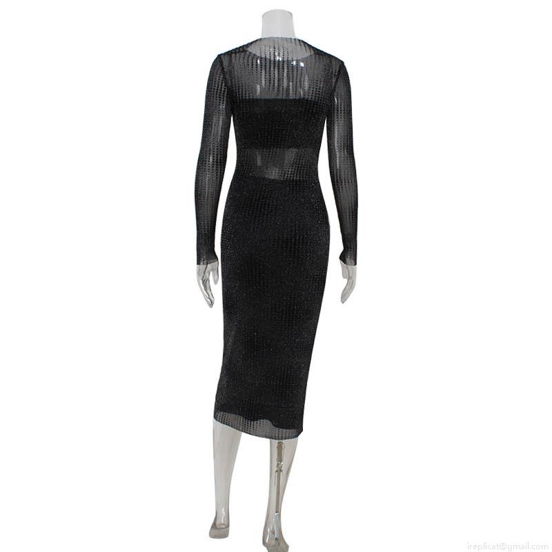 • Women's Sexy 3 Piece Skirt Set Sheer Mesh Long Sleeve Cover Up With Tube Top And High Waist Bodycon Midi Skirt Glitter Party Clubwear