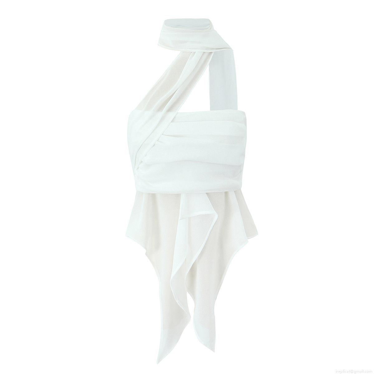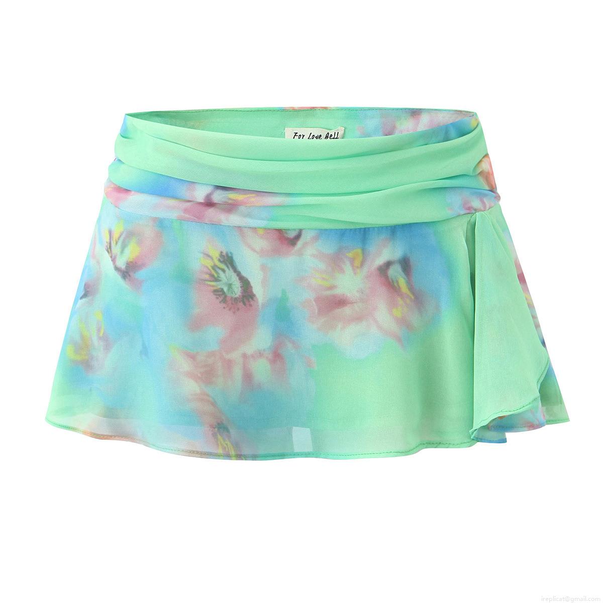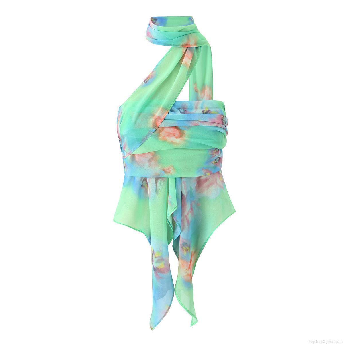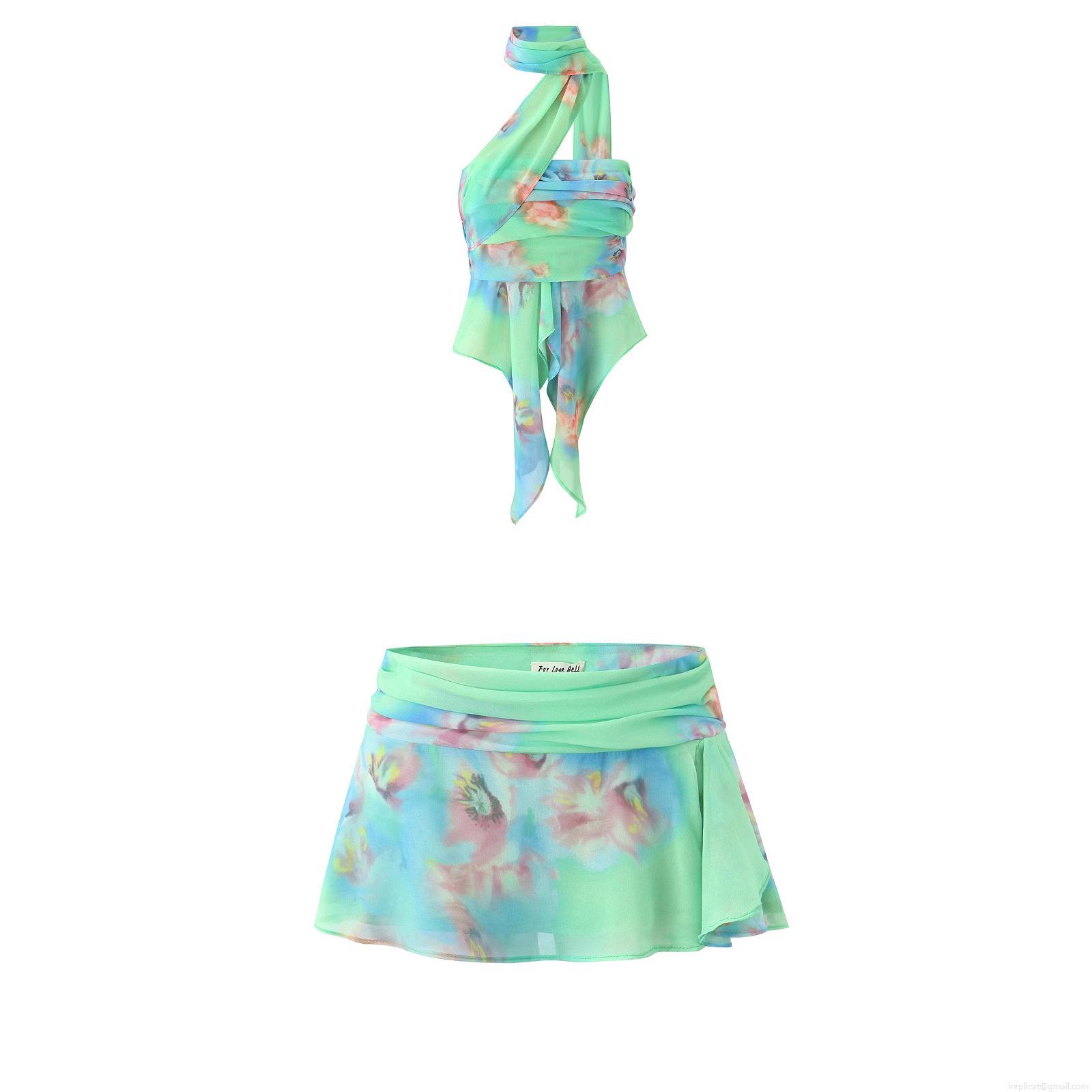 • Women's Sexy Floral Print Halter Neck Top And Pleated Mini Skirt Set Irregular Chiffon Two Piece Outfits For Summer Beach Party Streetwear