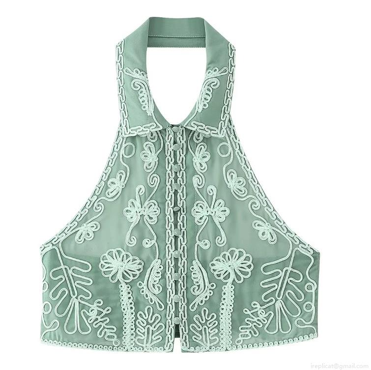 Hollow Out, Flowers, Neckband, Backless, Single-breasted, Scroll Pattern, 3d Embroidery, Ribbon Embroidery