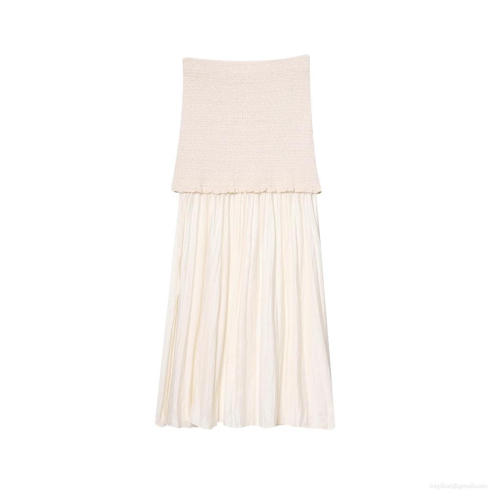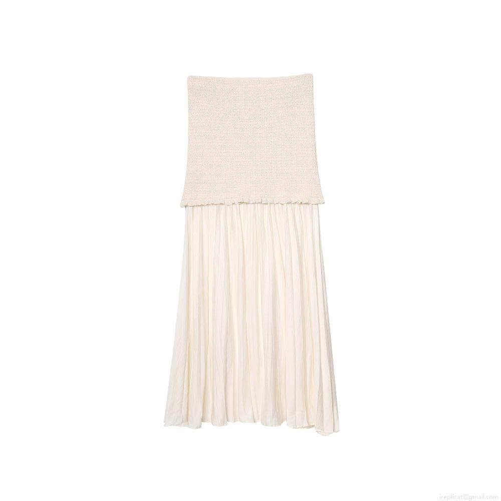 • Women's Sexy Knit Tube Top And Pleated Maxi Skirt Set Cotton Blend Lettuce Edge Sleeveless Two Piece Summer Casual Streetwear Outfit