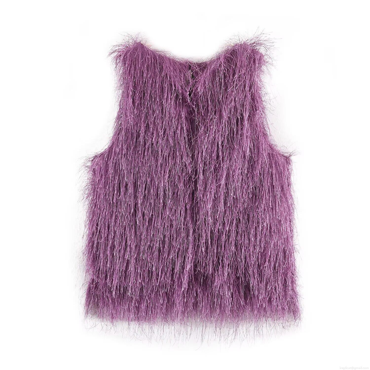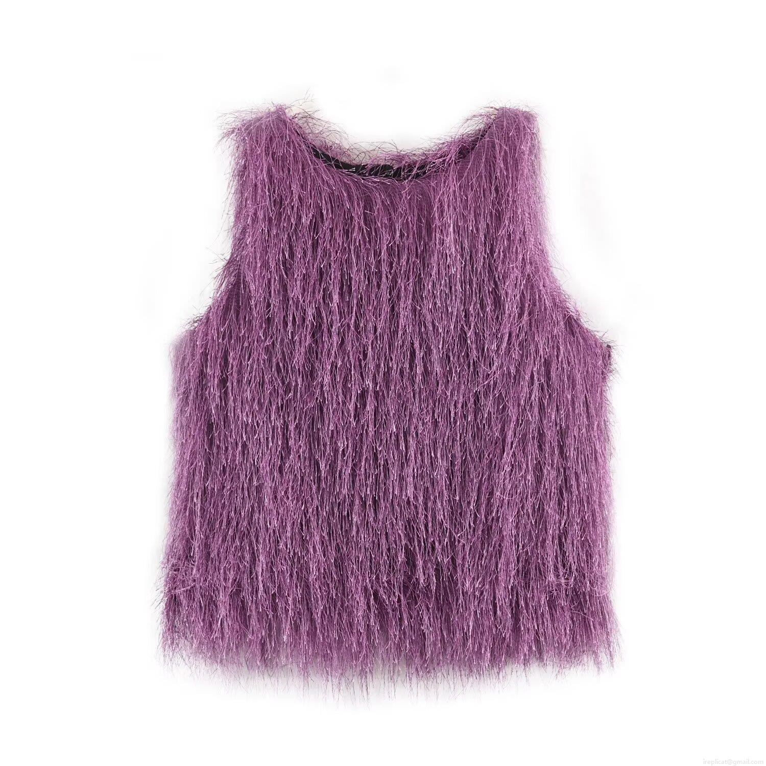 • Women's Sexy Purple Faux Fur Fringe Two-Piece Set Sleeveless Round Neck Crop Top and Bodycon Mini Skirt Party Clubwear Set
