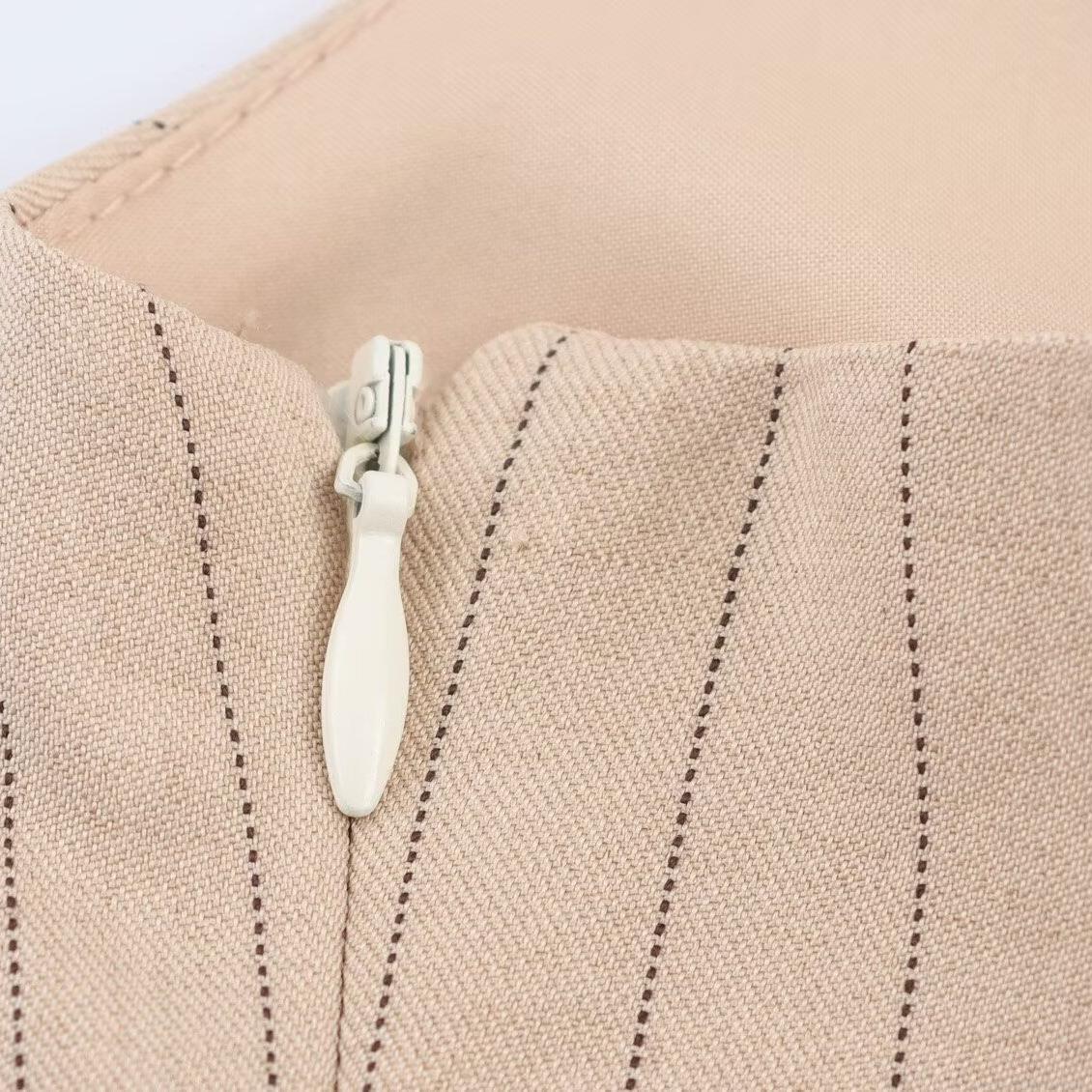 Vertical Stripes, V-neck, Backless, 3d Tailoring, Thin Vertical Stripes, Invisible Zipper