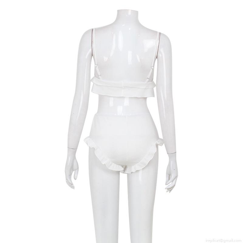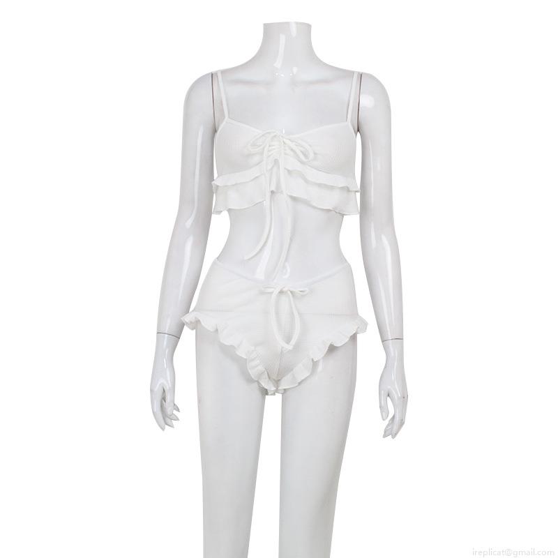 • Women's Sexy White Waffle Knit Two Piece Loungewear Set Ruffle Hem Camisole Crop Top And Shorts Set For Summer Beach Party Clubwear