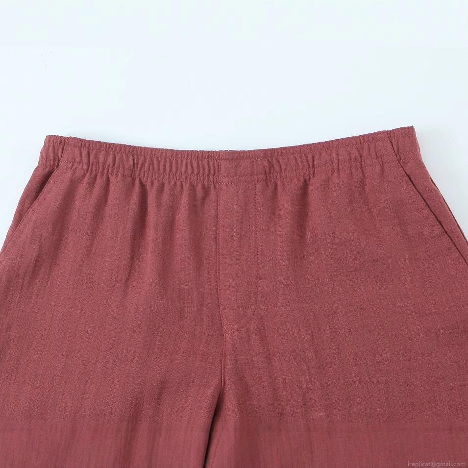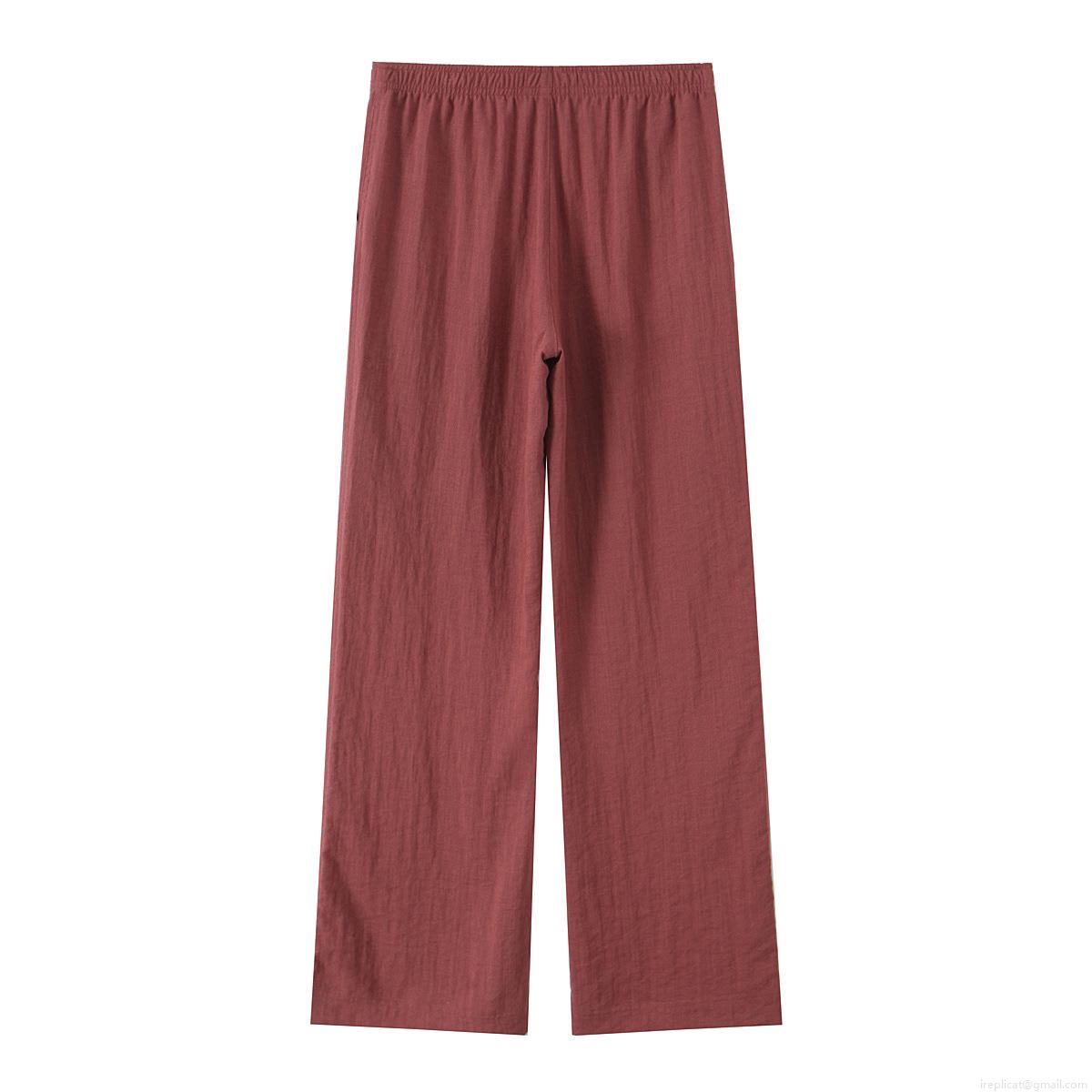 Solid Color, Lace, Elastic Waistband, Wide-leg, Cotton And Linen Texture