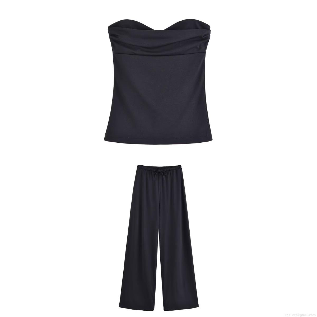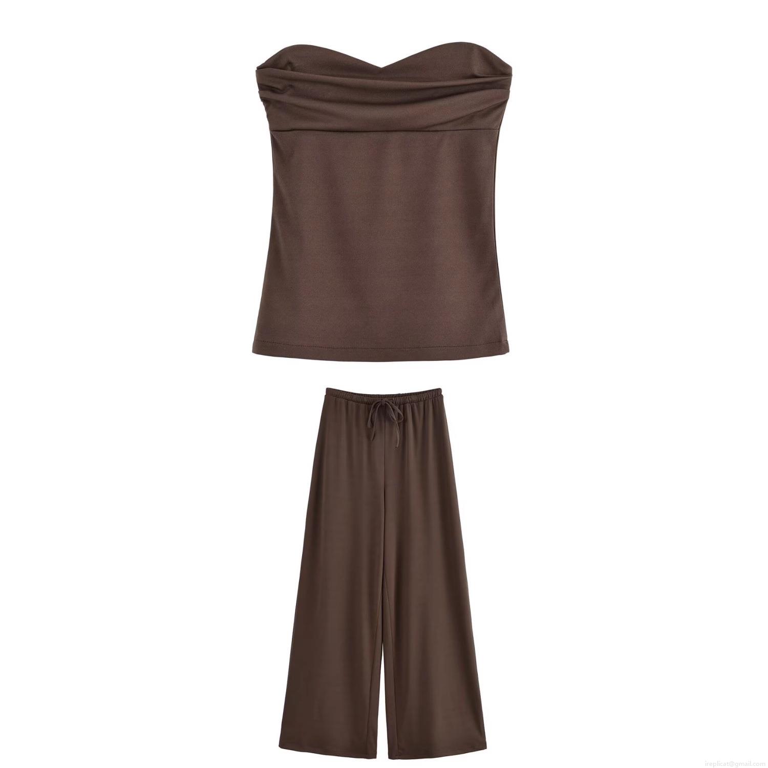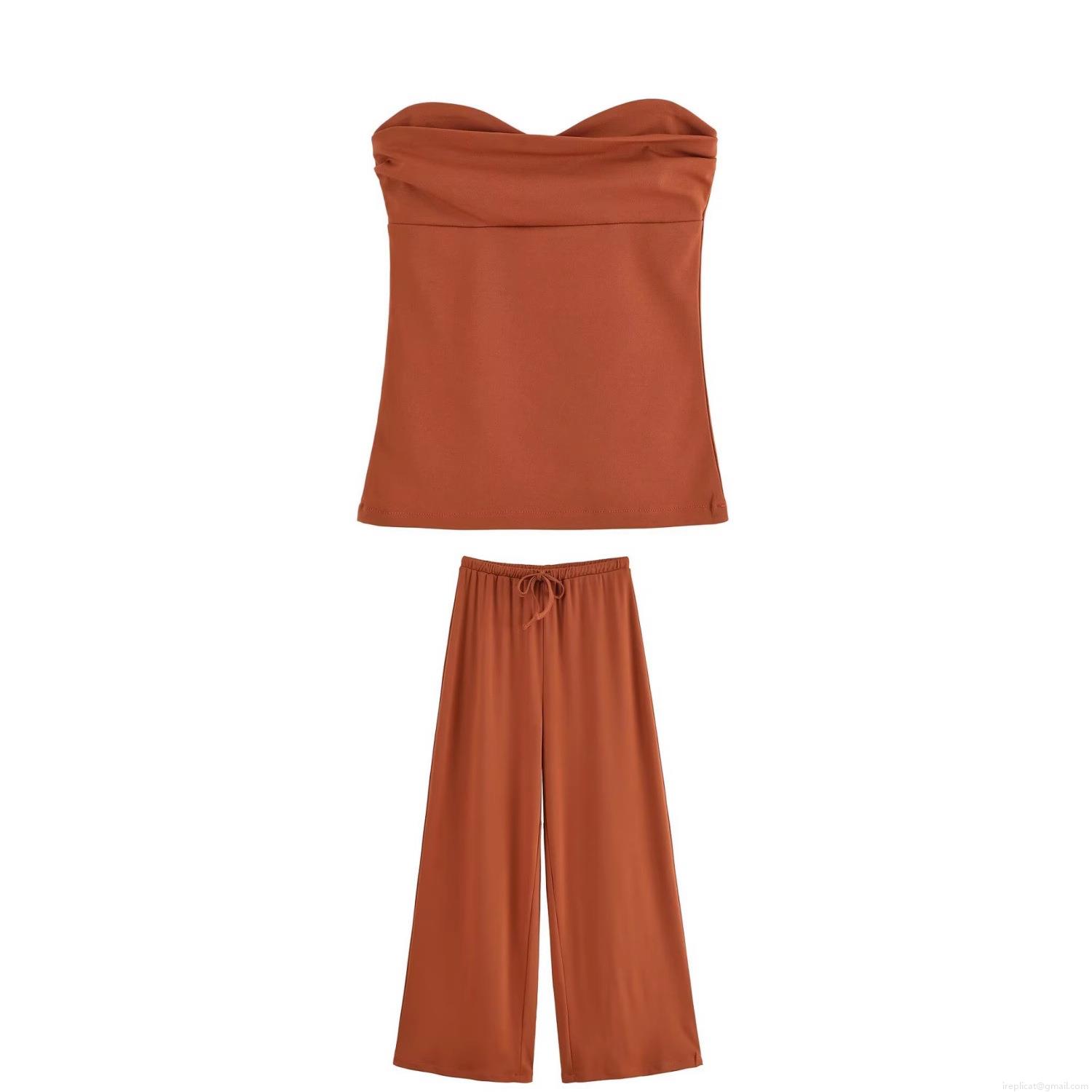 • Women's Summer 2 Piece Linen Blend Outfit Set Sexy Sweetheart Tube Top And High Waist Wide Leg Long Pants Casual Streetwear Vacation Sets