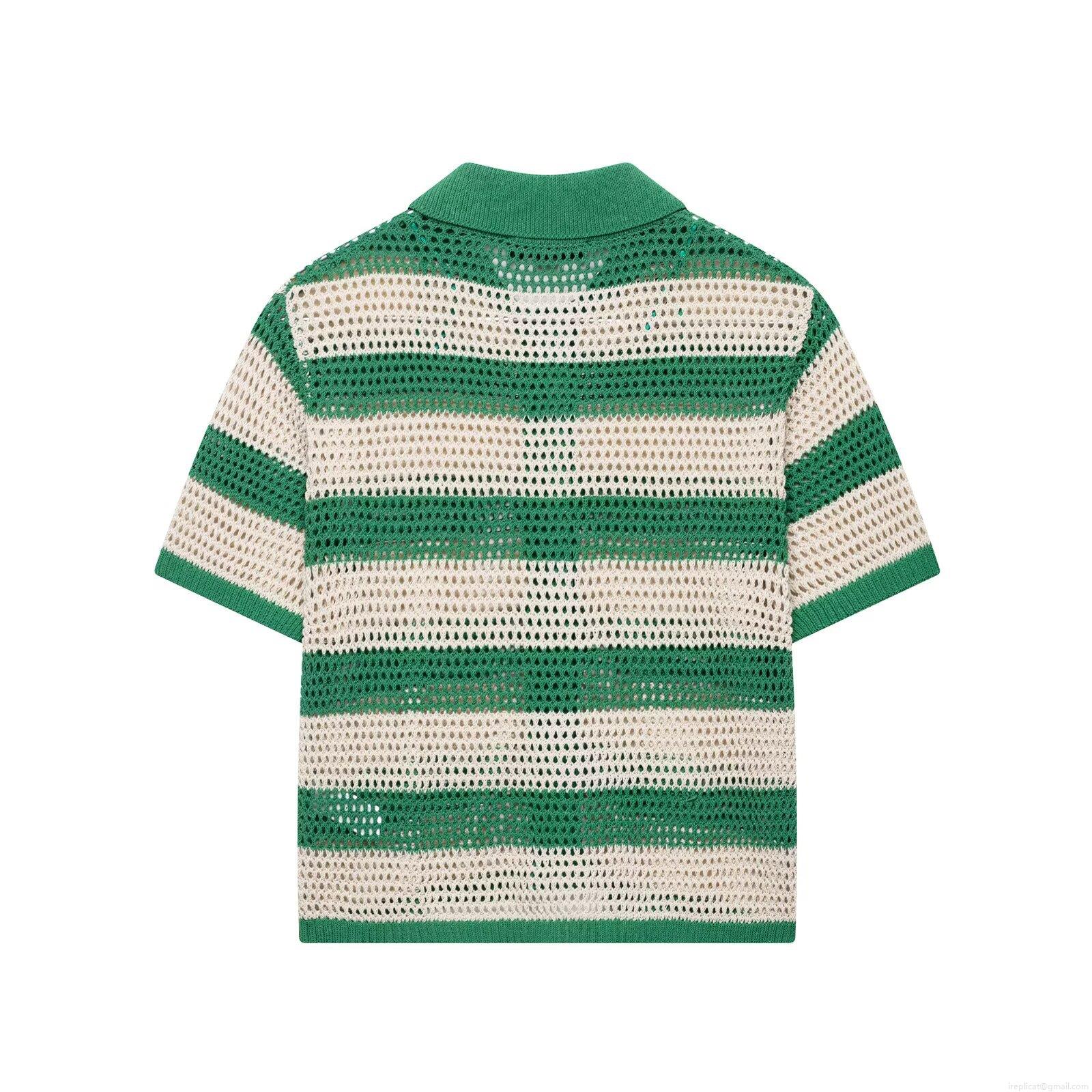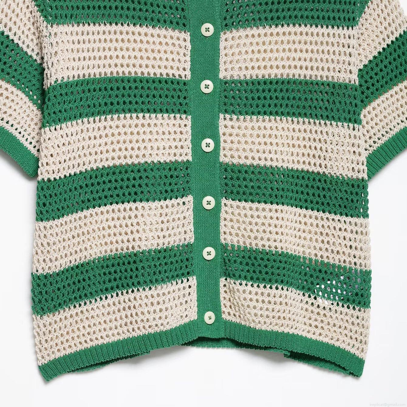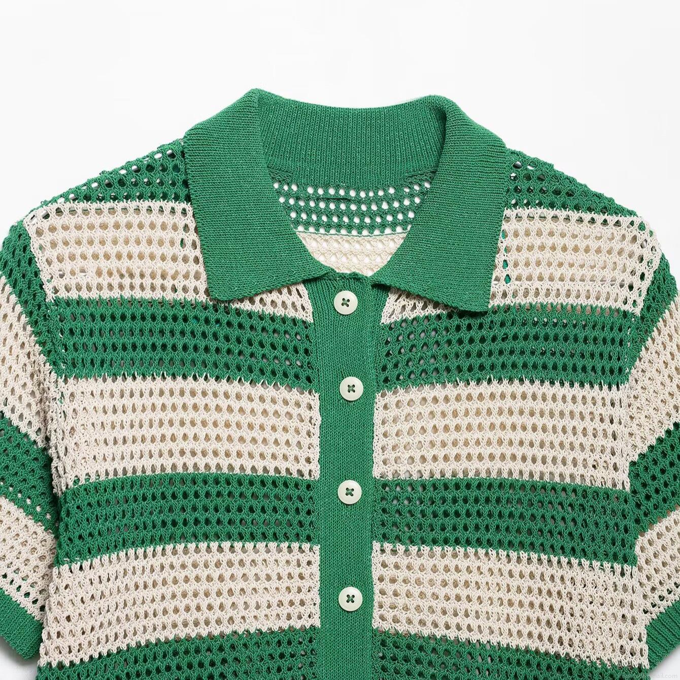 Stripe, Hollow Out, Crochet, Polo Collar