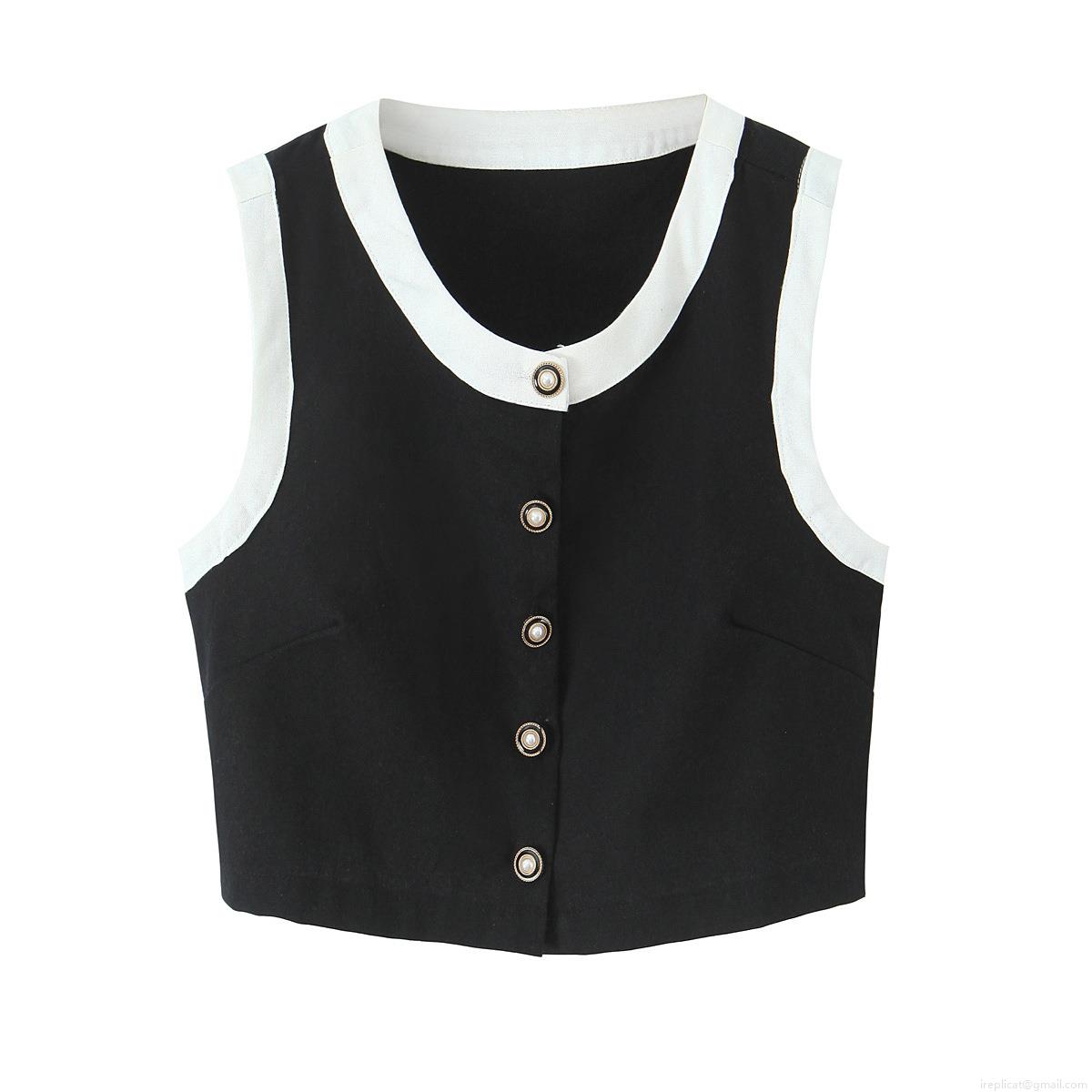 Women's Summer Two Piece Set Contrast Color Sleeveless Vest And High Waist Shorts Chic Cotton Linen Blend Outfit With Pearl Buttons Streetwear