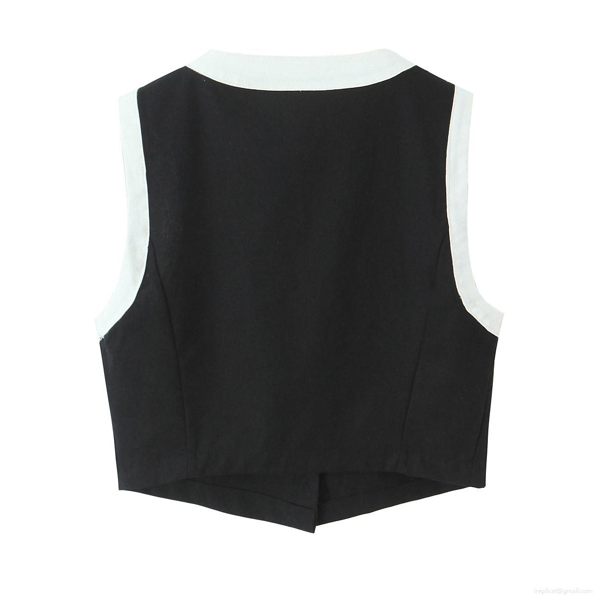 • Women's Summer Two Piece Set Contrast Color Sleeveless Vest And High Waist Shorts Chic Cotton Linen Blend Outfit With Pearl Buttons Streetwear
