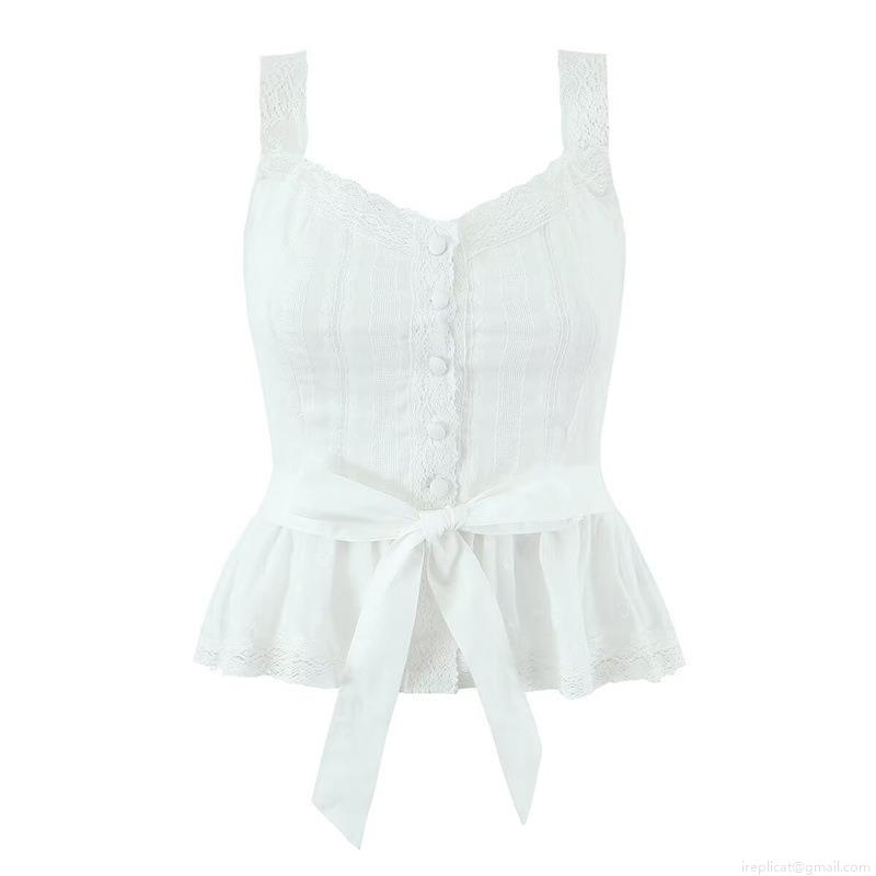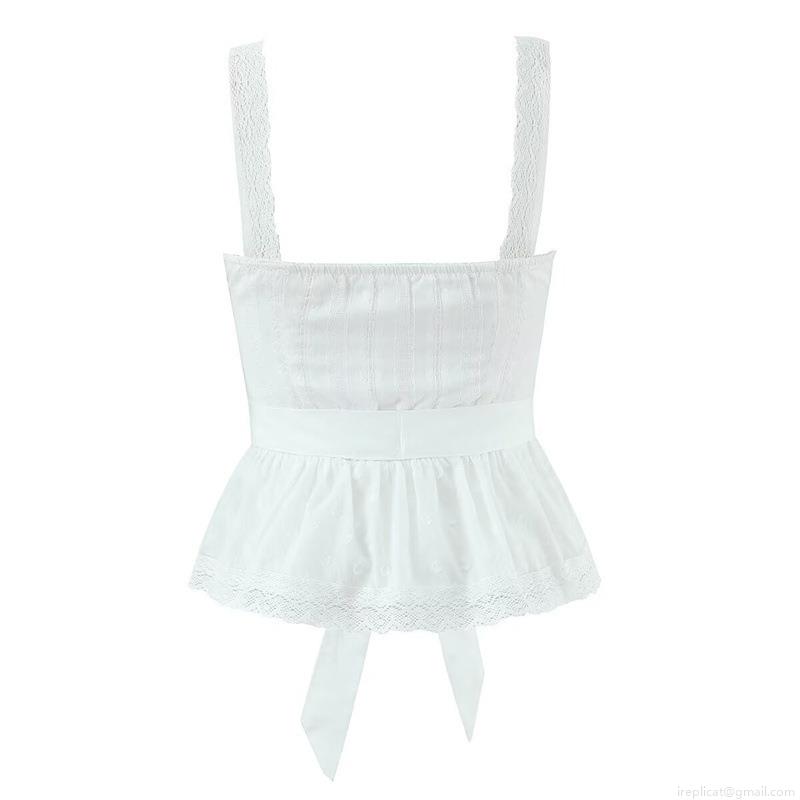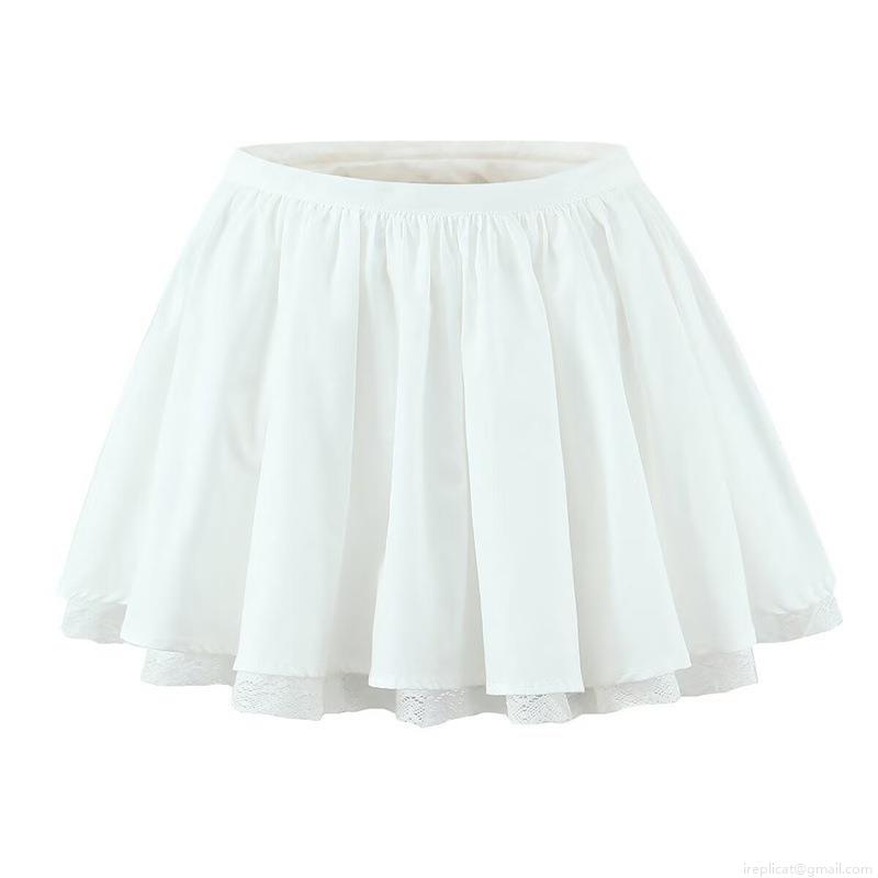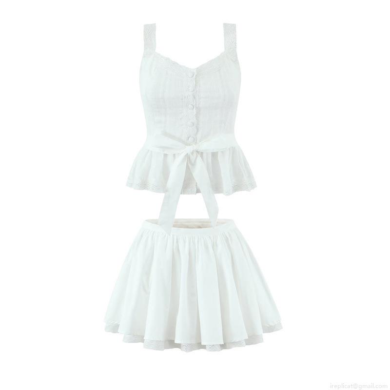 • Women's Sweet White 100% Cotton 2-Piece Set Lace Trim Camisole And Tiered Pleated Mini Skirt Outfits For Vacation Party Streetwear