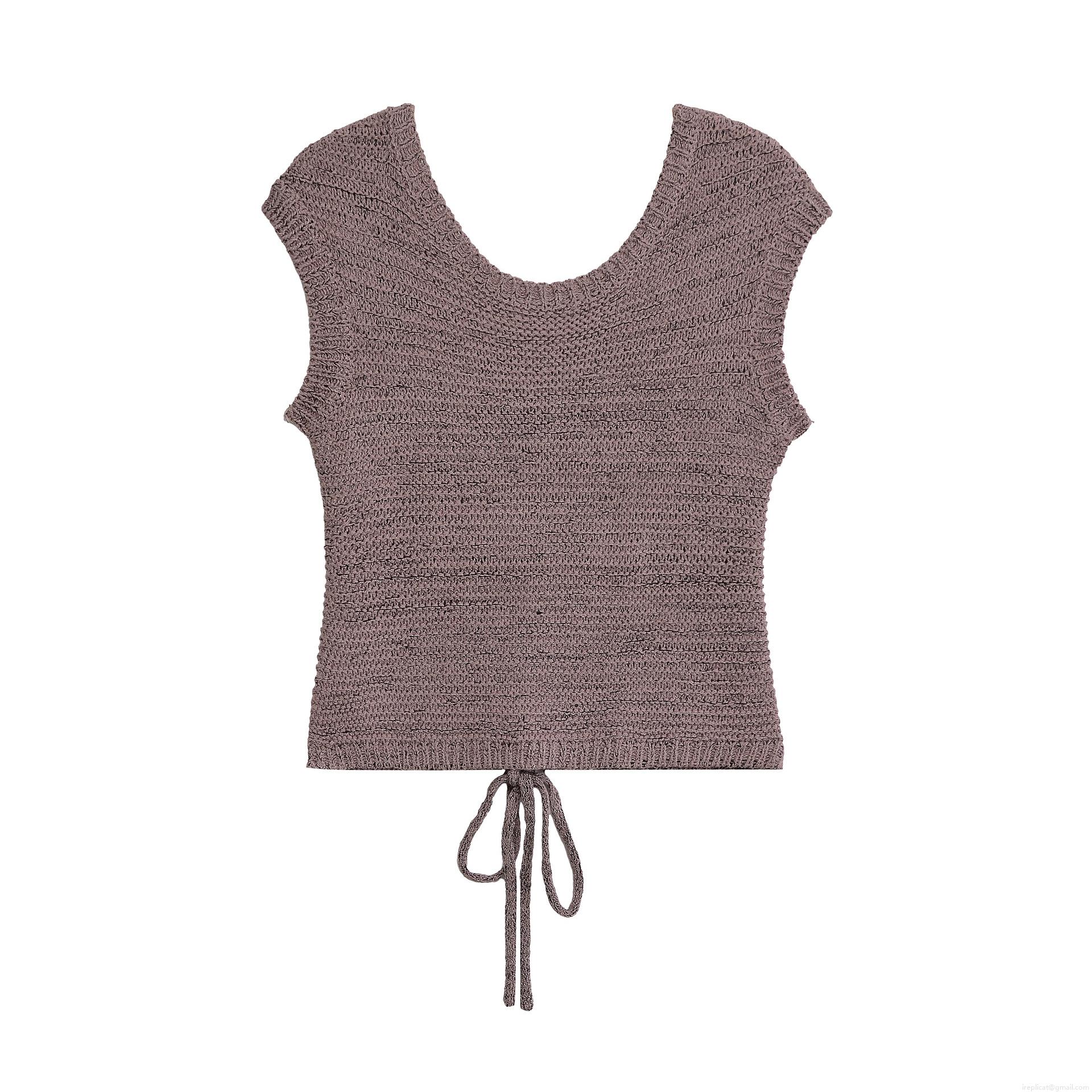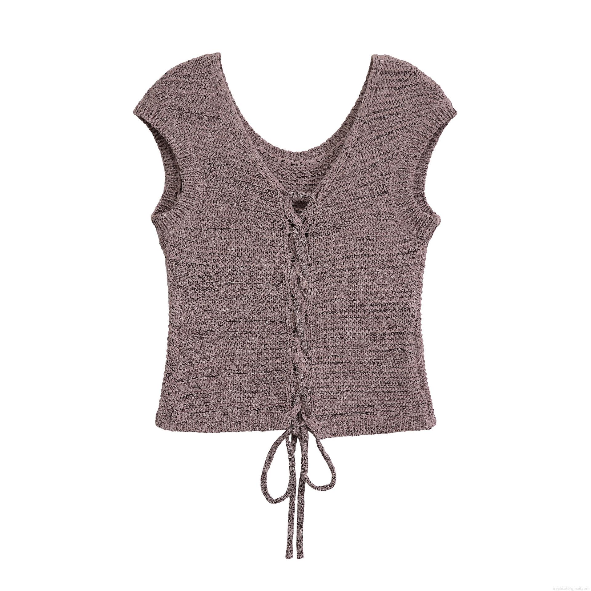 Solid Color, Hollow Out, Chunky Knit, Lace-up Decoration, Crossback