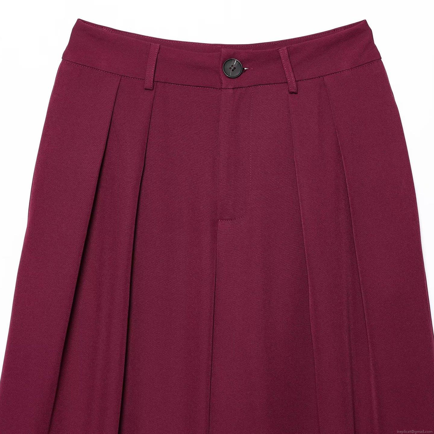 Solid Color, Waist shaping, Pleats, V-neck, Lace, Wide-leg