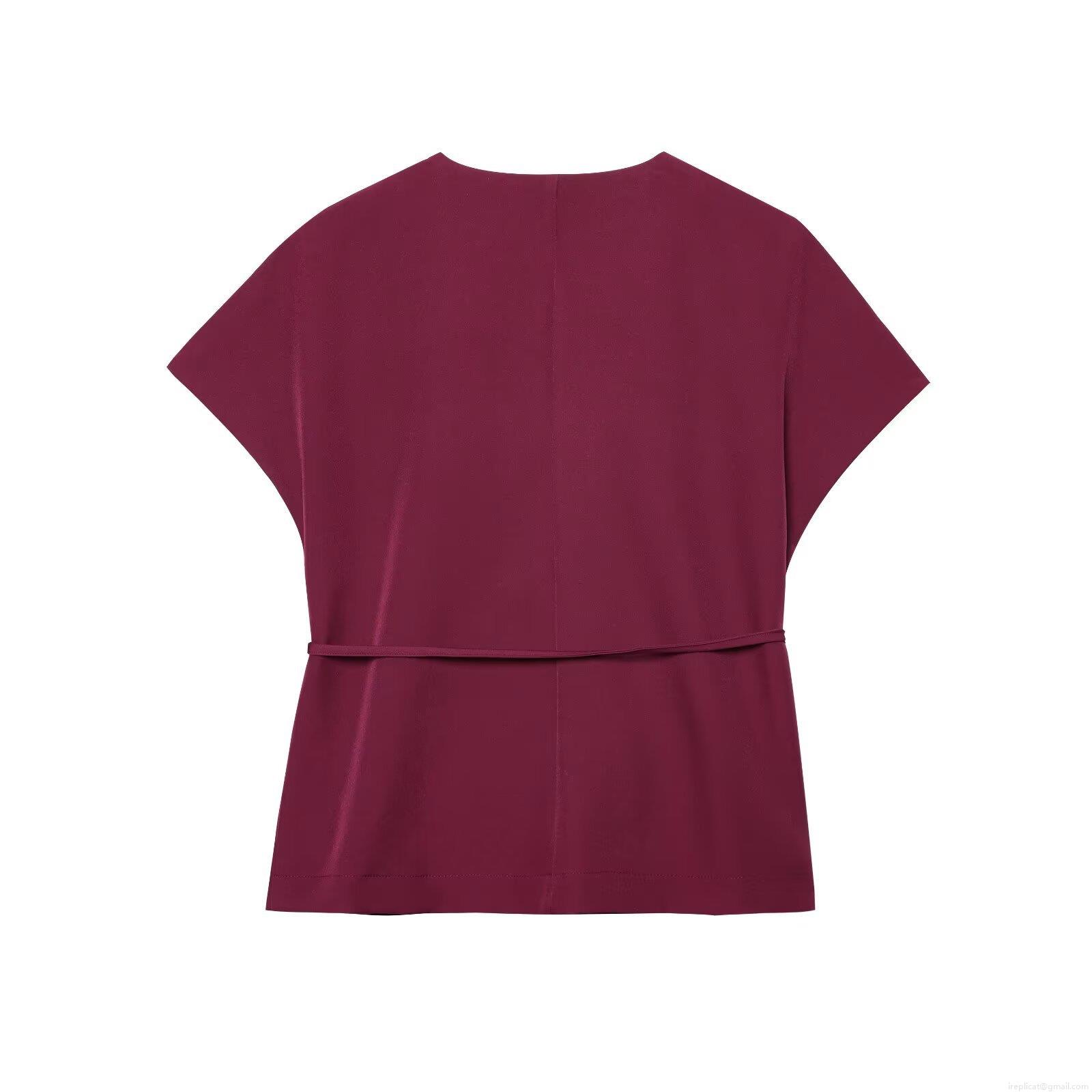 • Women's Two Piece Outfits Casual V-Neck Short Sleeve Tie Waist Top And High Waist Wide Leg Suit Pants Set Summer Fashion Polyester Spandex Commuter Solid Color Trousers Outfits For Women