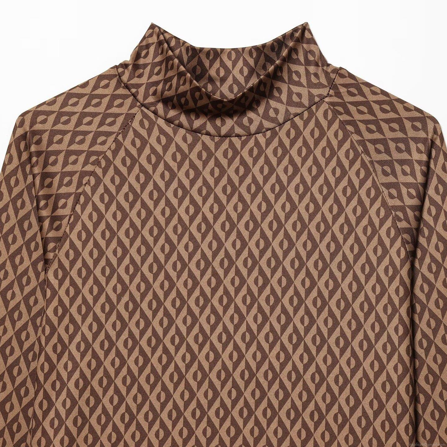 Geometric Shapes, Diamond Grid, High Neck Design, All-over Geometry