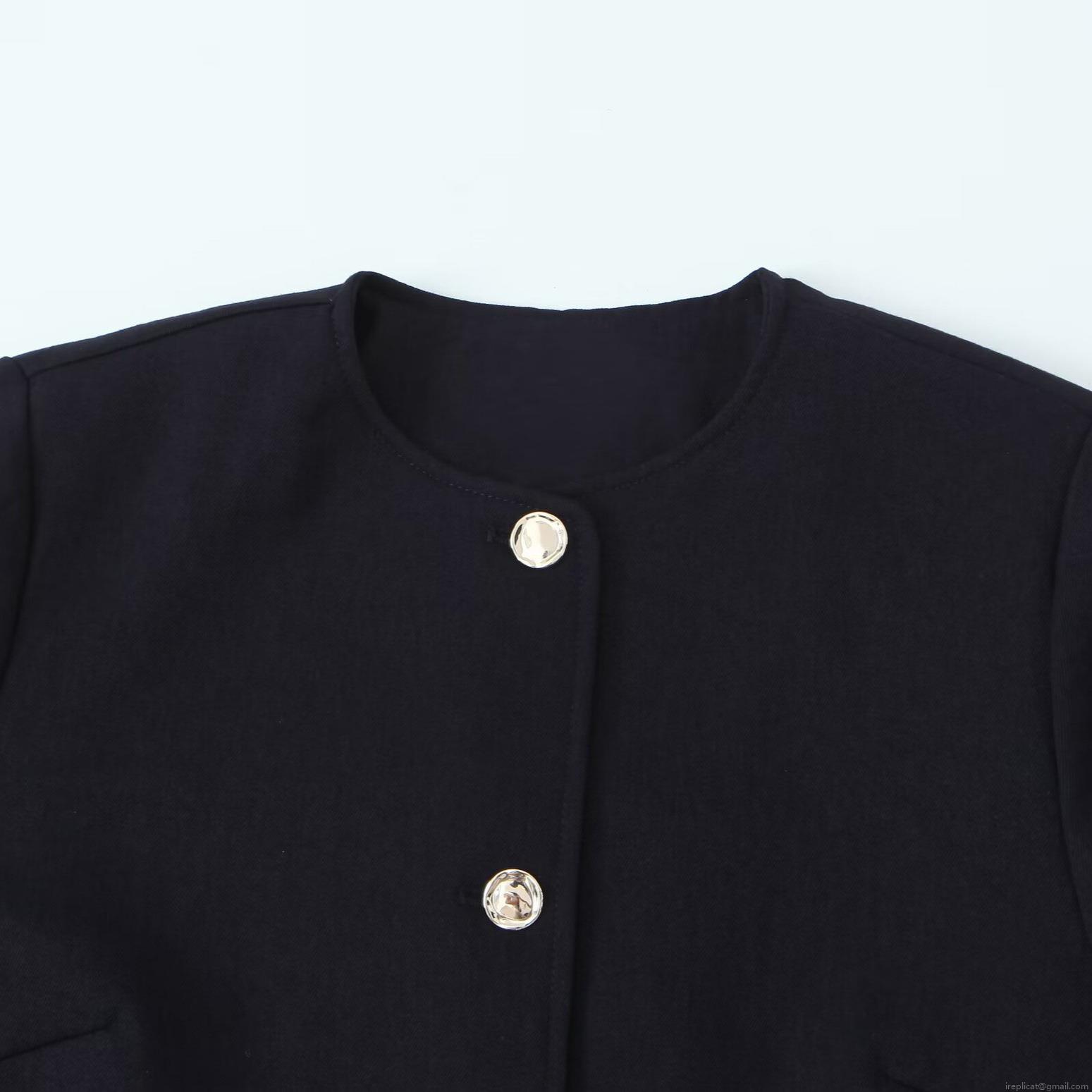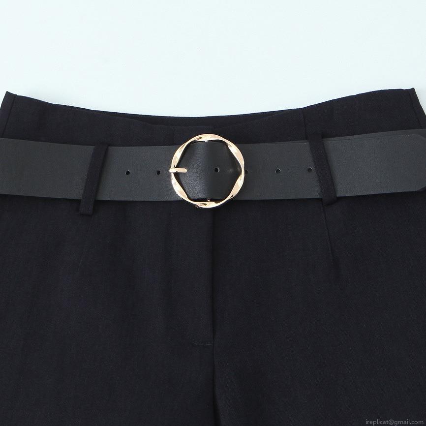 Solid Color, Golden Hardware, Buttons, Belt, Crew Neck, Short Design