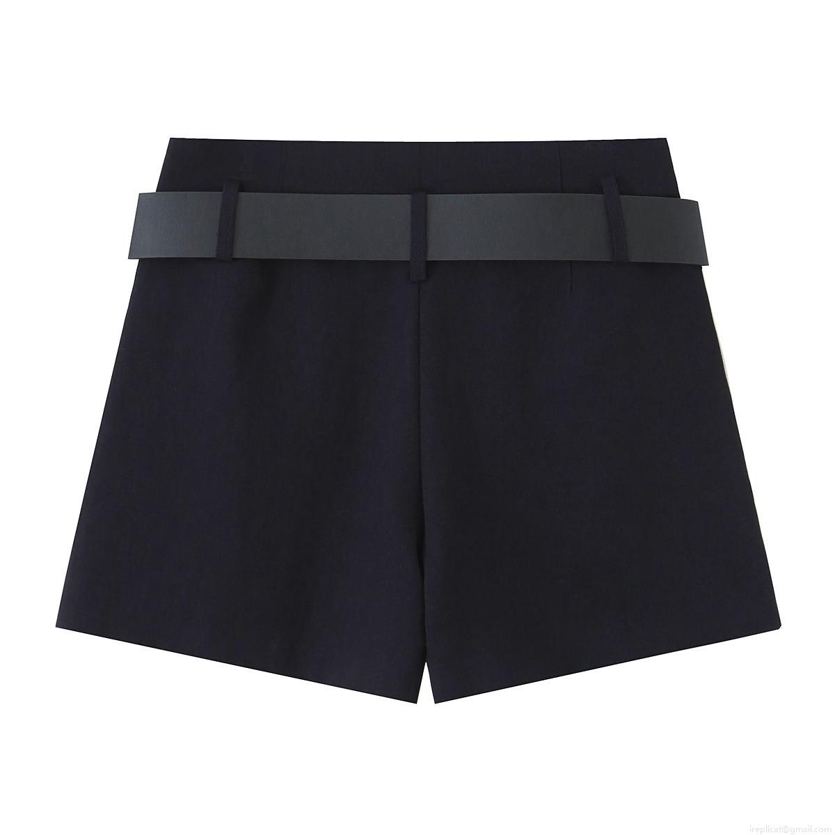 • Women's Two Piece Set Casual Solid Color Short Blazer Jacket And High Waist Shorts With Belt Gold Buttons Autumn Fashion Office Lady Daily Wear Black Suit