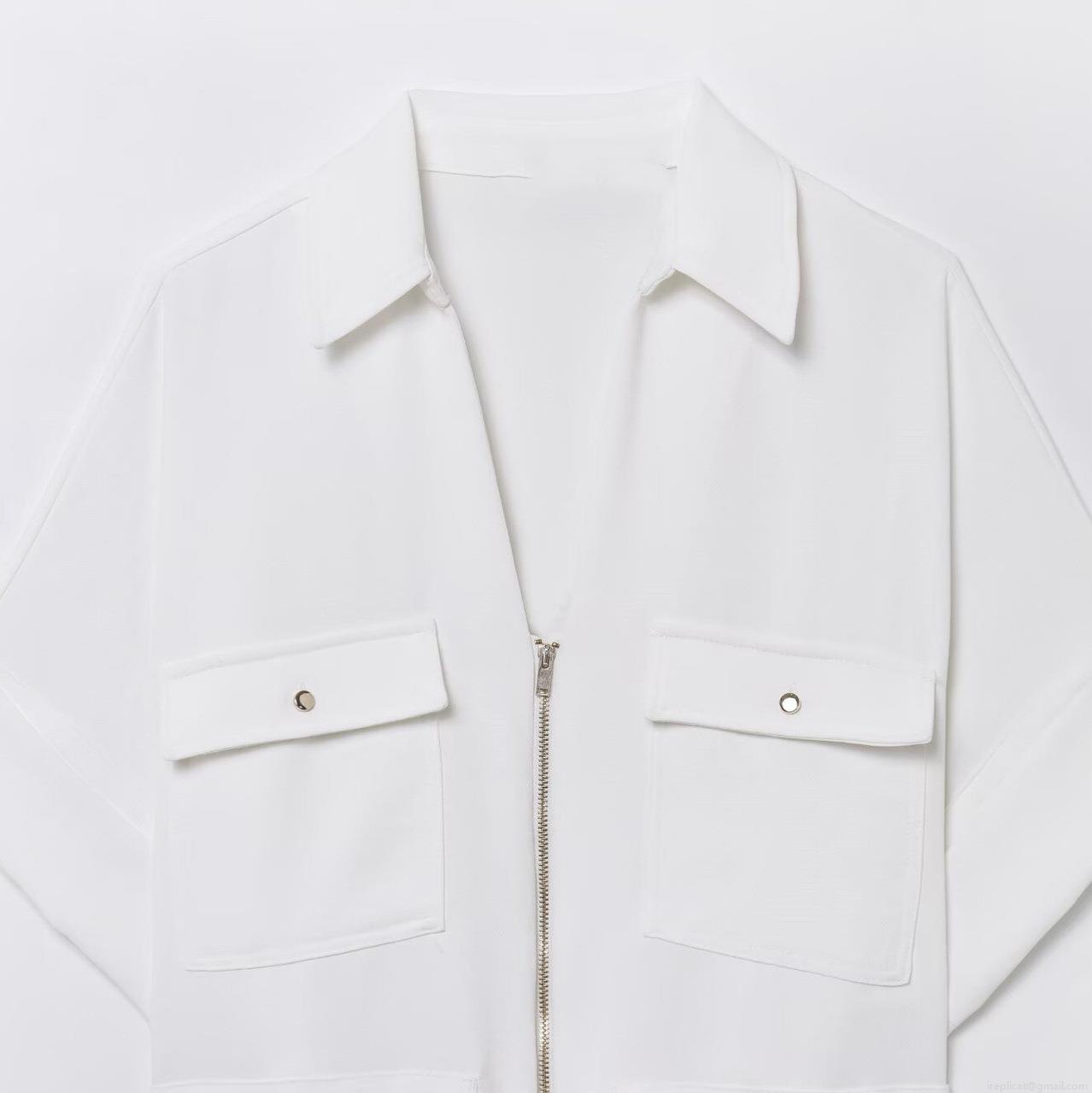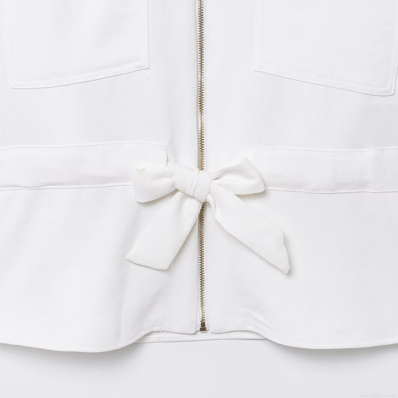 Solid Color, Bow Tie, Wide-leg, Metal Zipper, Large Chest Pocket