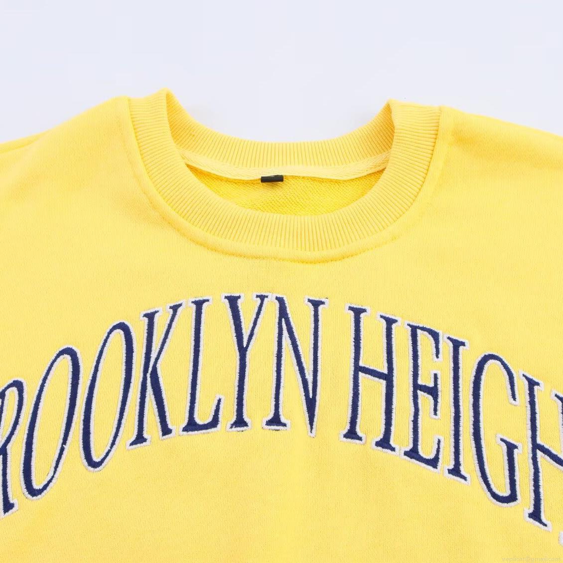 • Women's Two Piece Shorts Set Brooklyn Heights Letter Embroidery Long Sleeve Crop Sweatshirt And Elastic Waist Shorts Cotton Blend Casual Sporty Loungewear Yellow