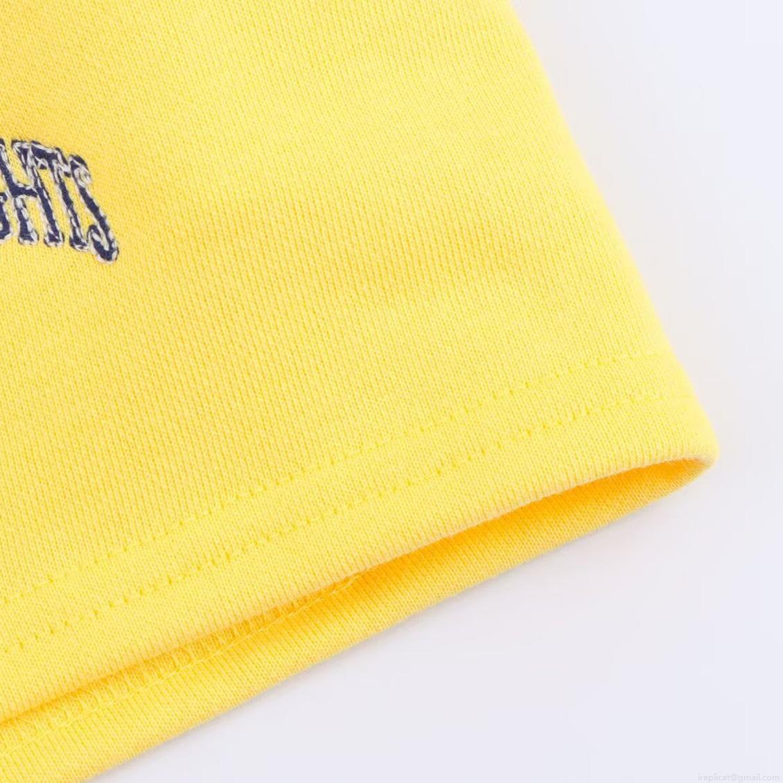 Women's Two Piece Shorts Set Brooklyn Heights Letter Embroidery Long Sleeve Crop Sweatshirt And Elastic Waist Shorts Cotton Blend Casual Sporty Loungewear Yellow