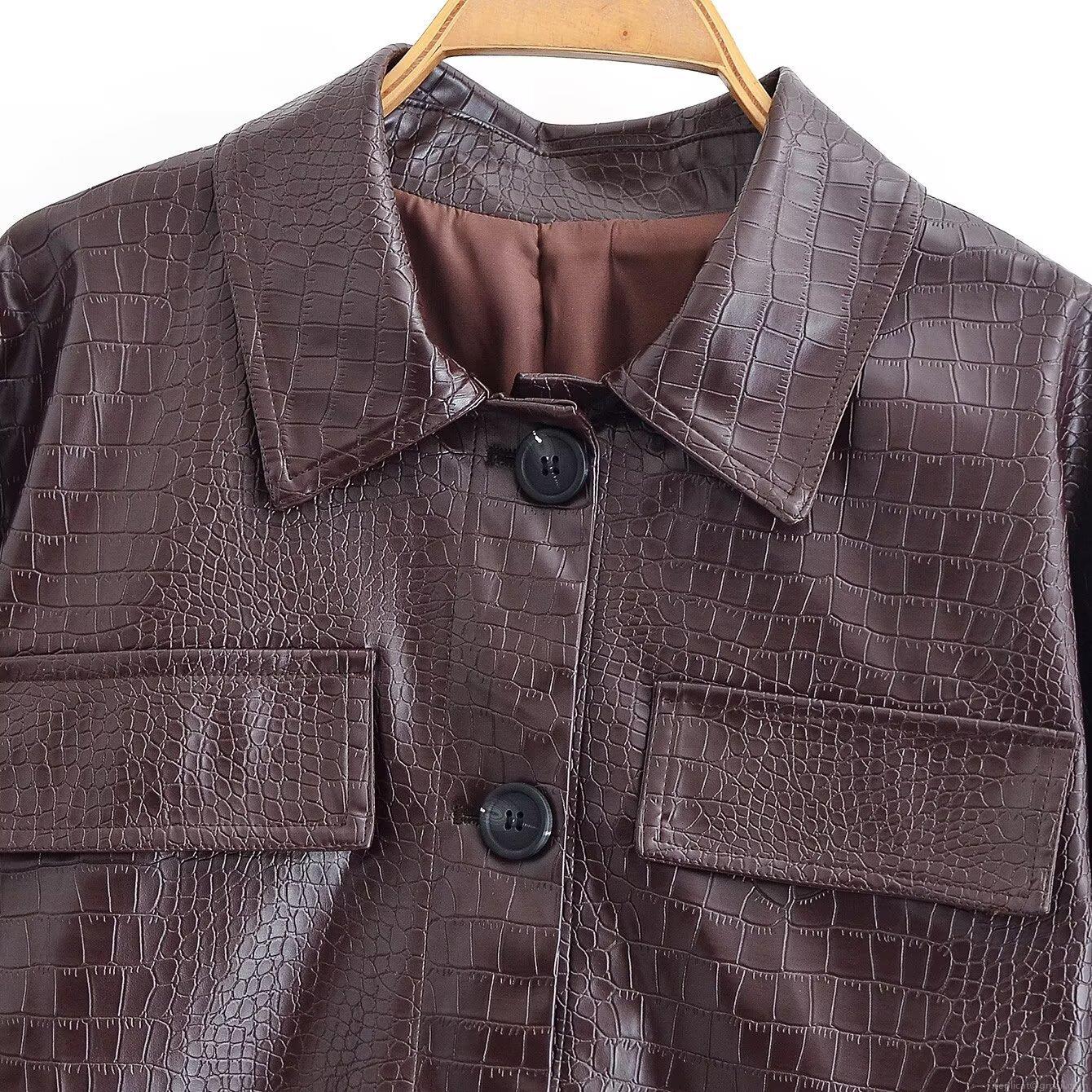Women's Vintage Crocodile Embossed Faux Leather Jacket And Straight Pants Set Two Piece Street Biker Outfit PU Leather Coat Long Trousers For Women Youth