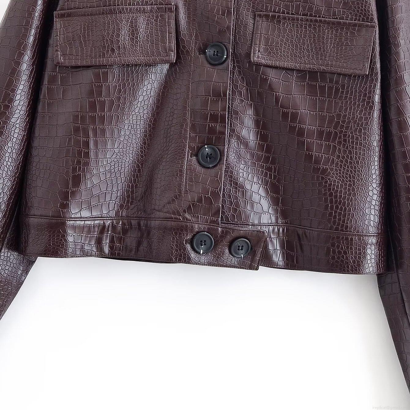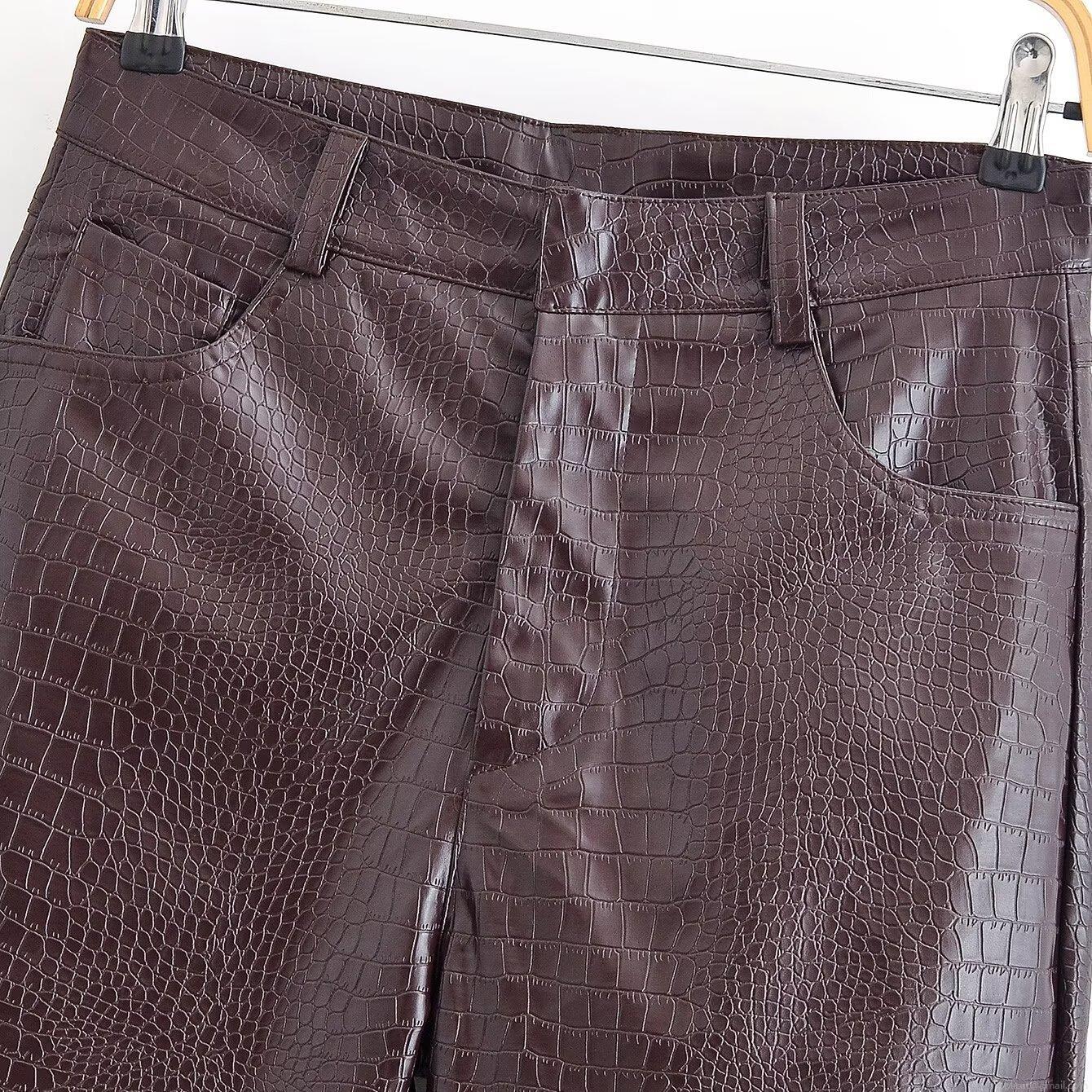• Women's Vintage Crocodile Embossed Faux Leather Jacket And Straight Pants Set Two Piece Street Biker Outfit PU Leather Coat Long Trousers For Women Youth