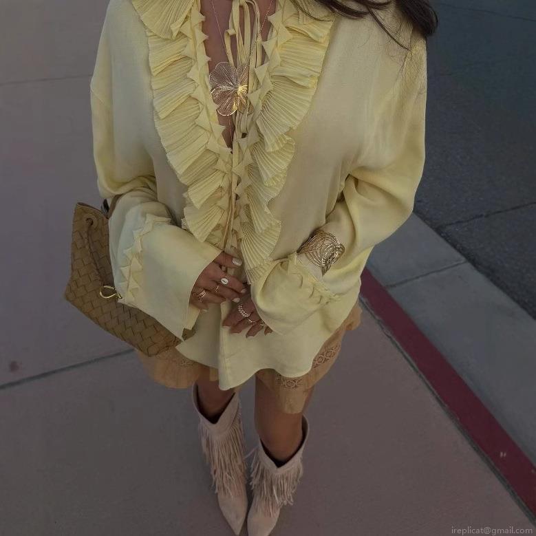 Solid Color, Wood Ear Edge, Pleats, Ruffles, Drawstring, Irregular Cut