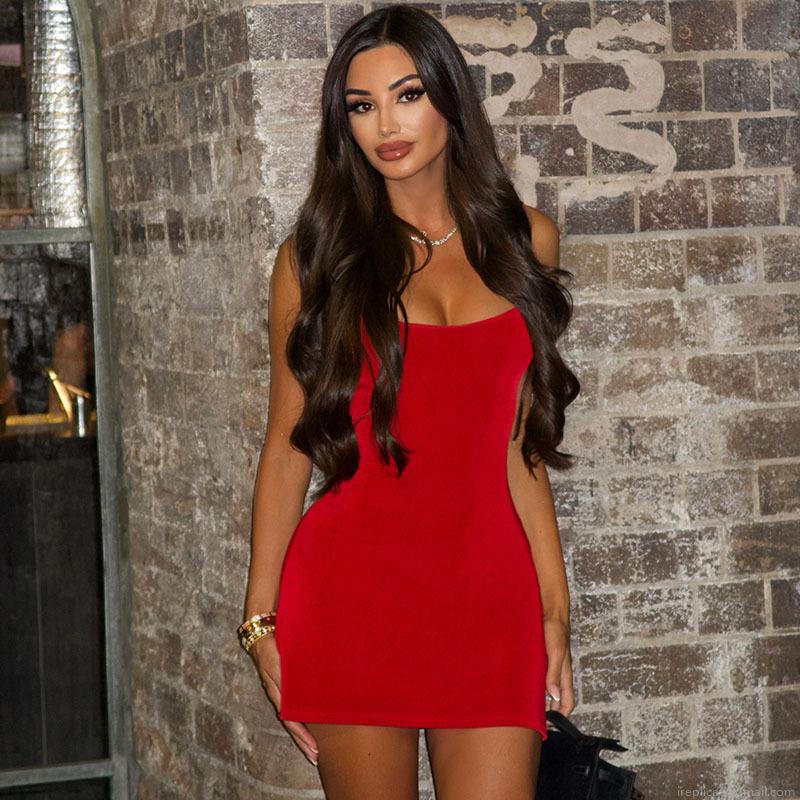 • Women's Sexy Backless Bodycon Mini Dress Elegant U-Neck Sleeveless Red Polyester Spandex Short Dress For Summer Night Party Clubwear Solid Color