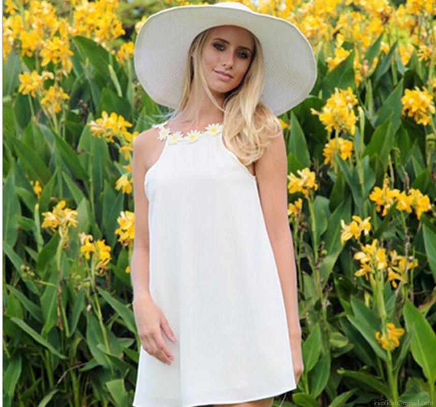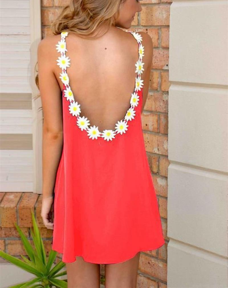 Halter Neck And Backless, Daisy Decoration On The Neckline